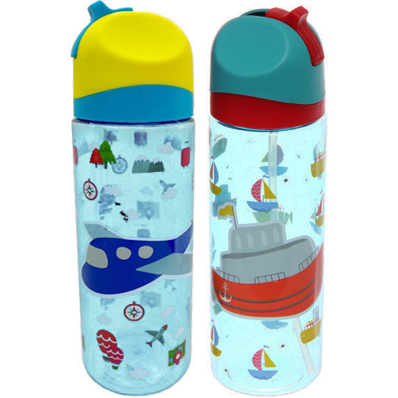 Бутылка питьевая пластиковая 600мл, серия "Самолет", с трубочкой, прозрачная