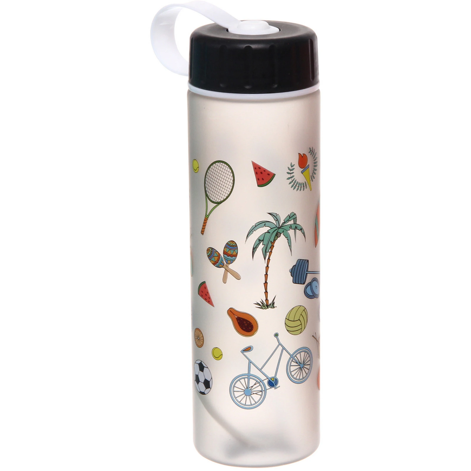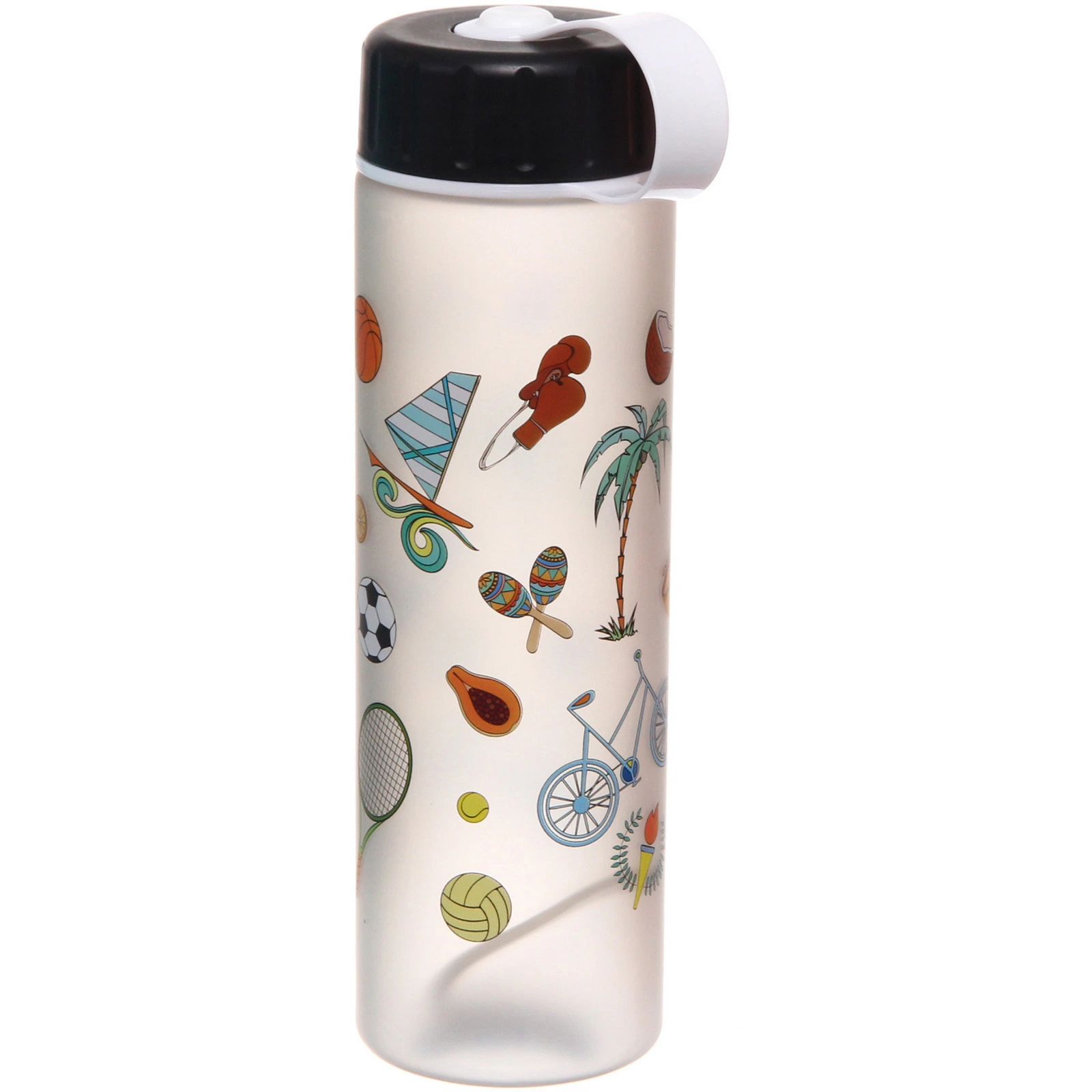 Товар представлен в ассортименте: расцветка и дизайн могут отличаться. Отгружается один товар, цвет определяется случайным образом из доступных вариантов. Практичная и стильная бутылка станет удобным аксессуаром для активного образа жизни и отличным дополнением к повседневным прогулкам и поездкам.