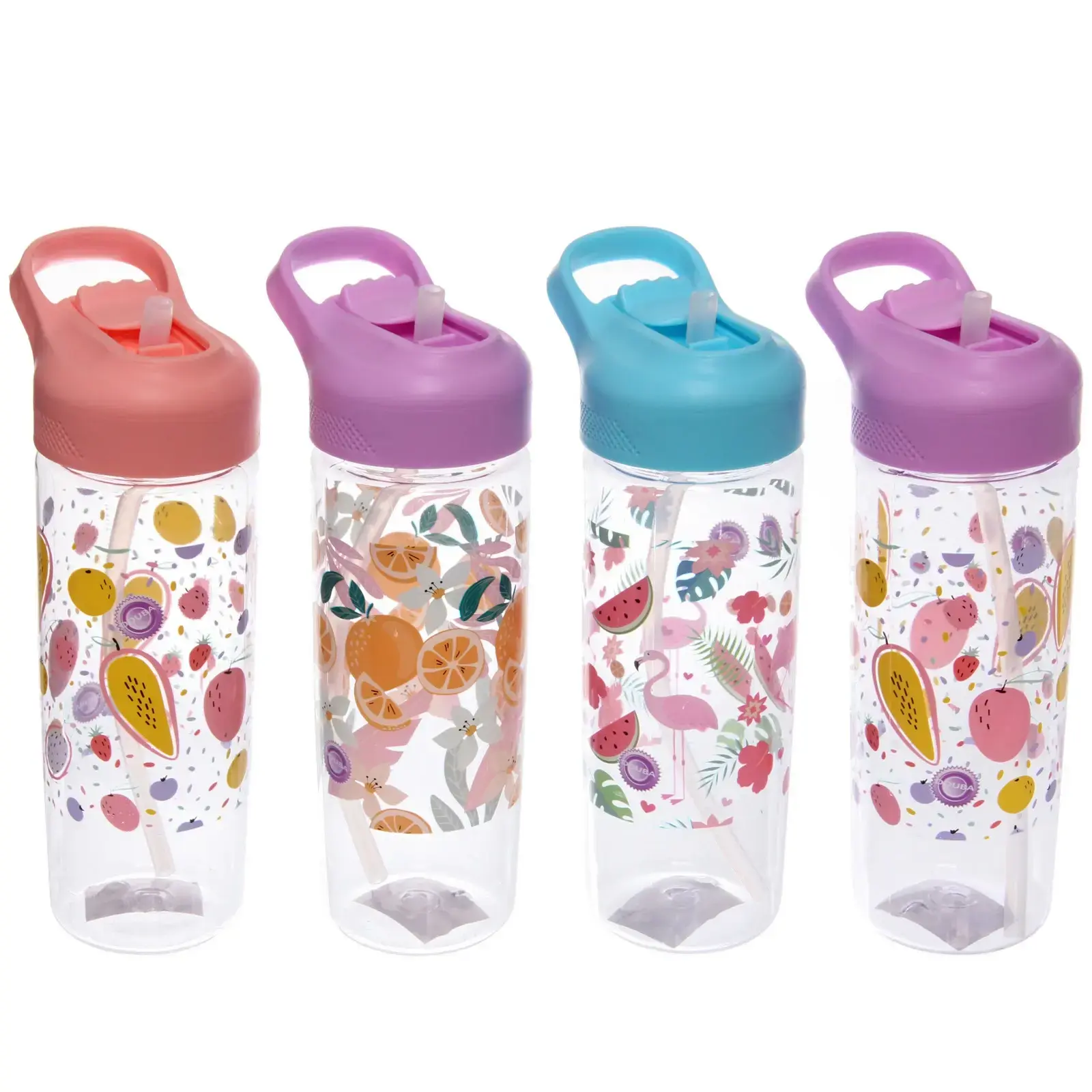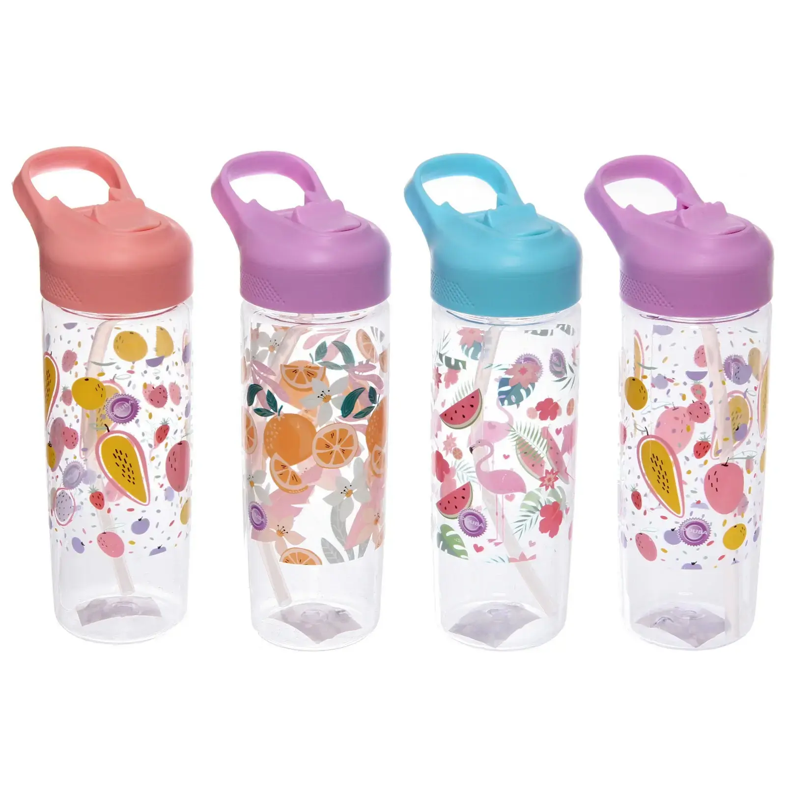 Бутылка питьевая пластиковая 650мл, 'Летний микс', с трубочкой, разноцветный принт