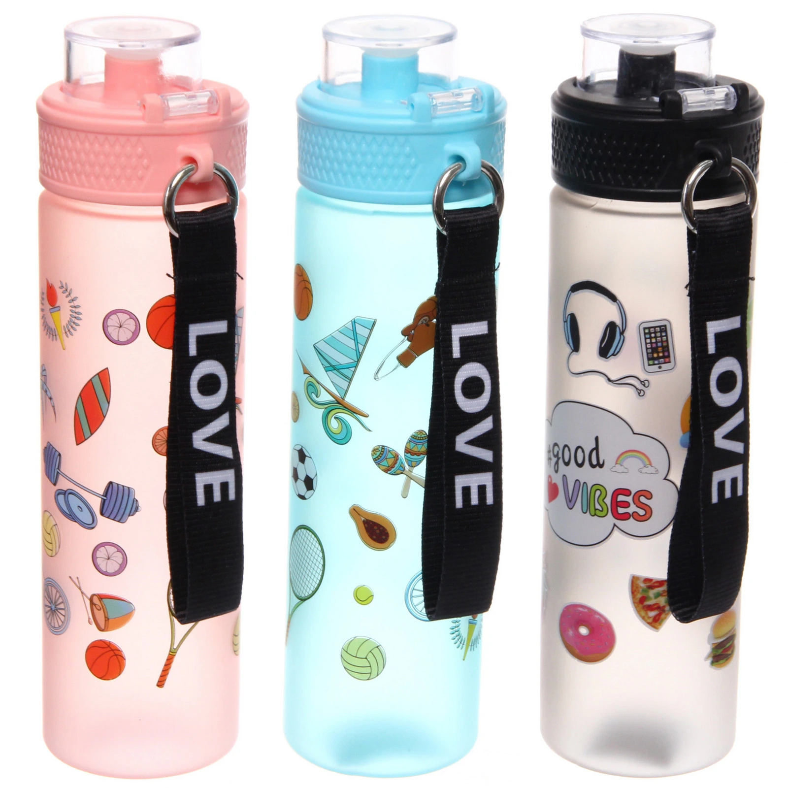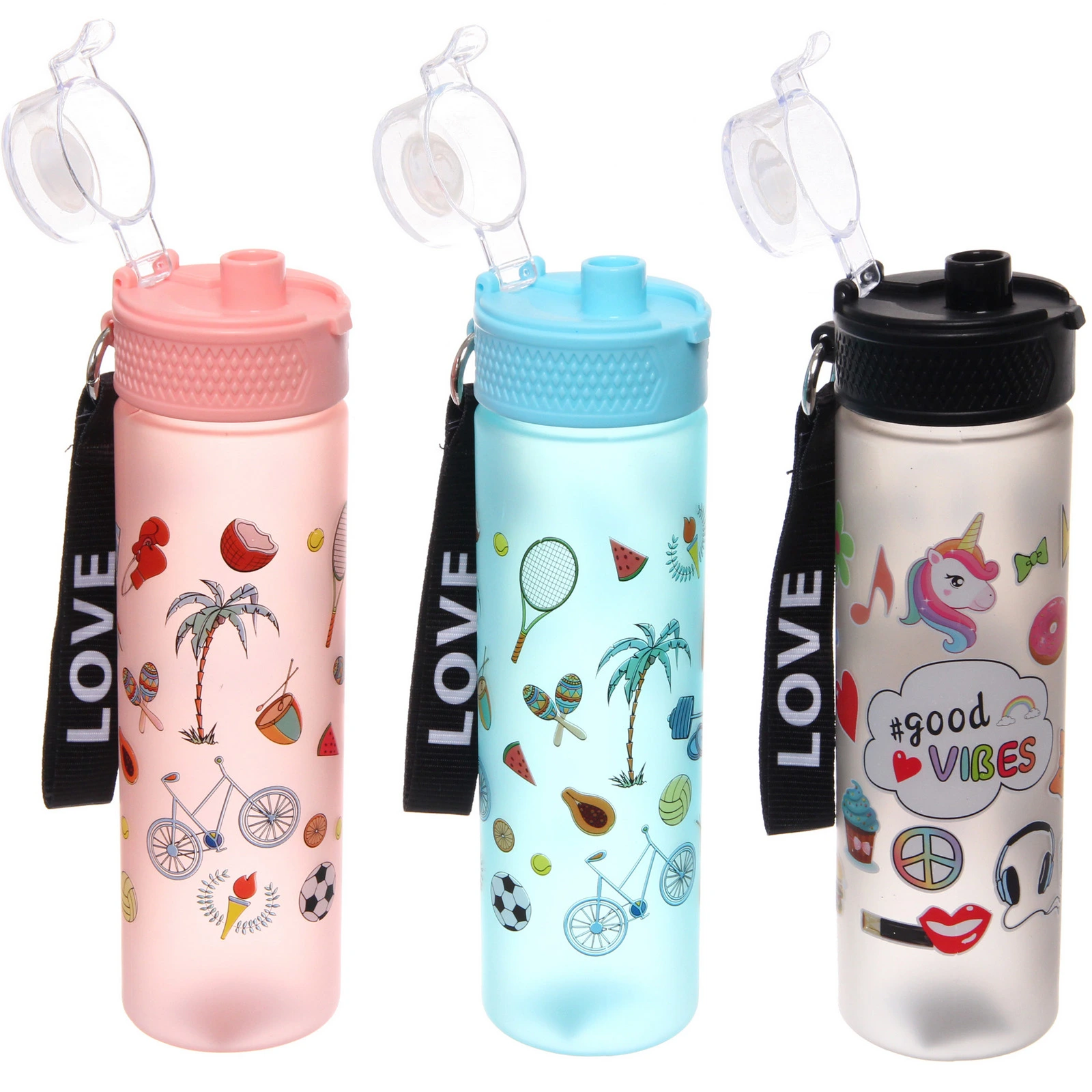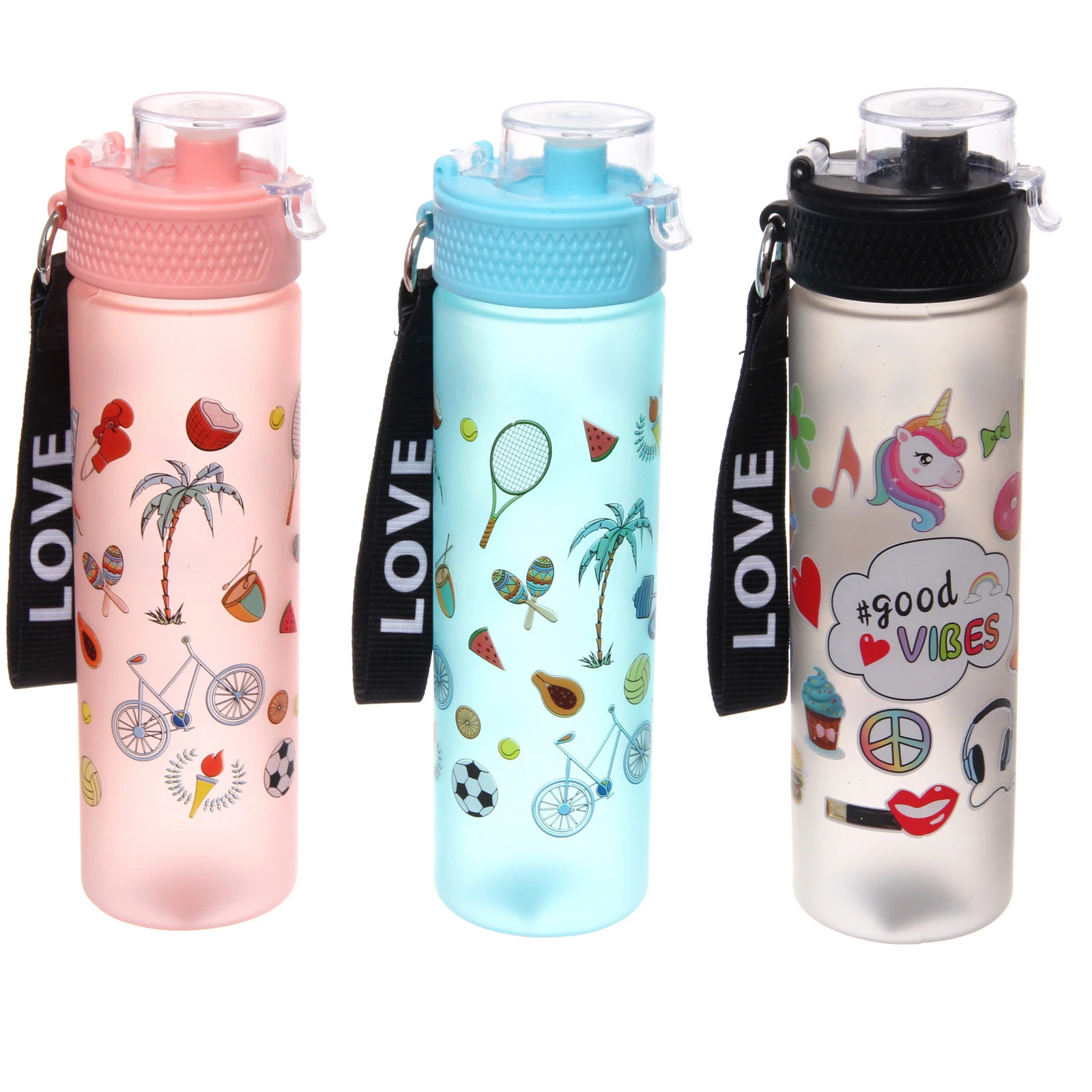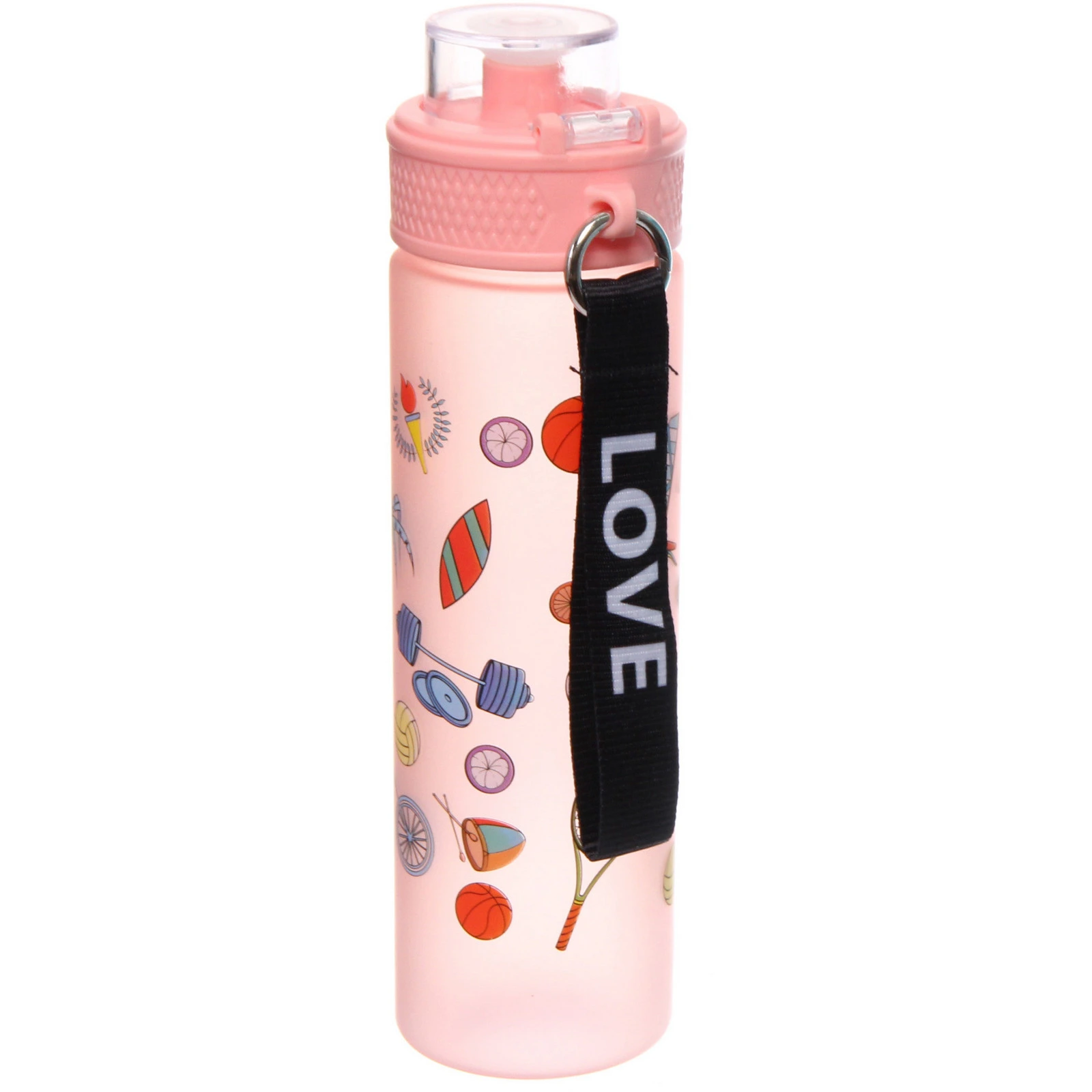 Бутылка украшена яркими принтами на тему спорта и летнего отдыха. Доступны разные цветовые решения и варианты рисунка. Товар представлен в формате «Разноцветный принт»: отгружается один экземпляр, расцветка определяется случайным образом из доступных.