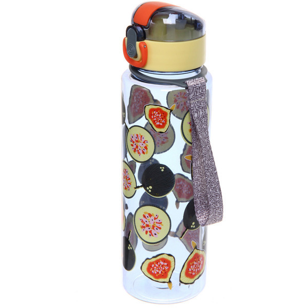 Бутылка питьевая пластиковая 700мл, принт 'Фрукты', с ручкой и кнопкой