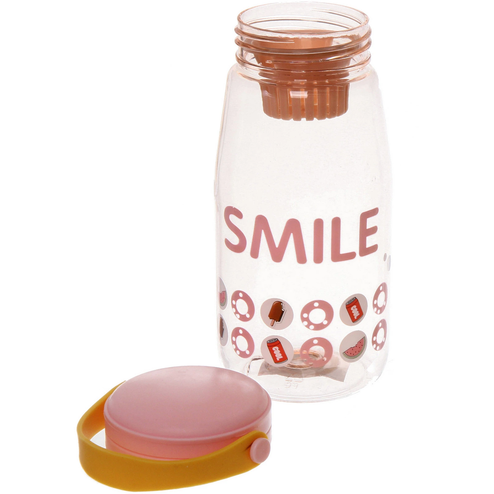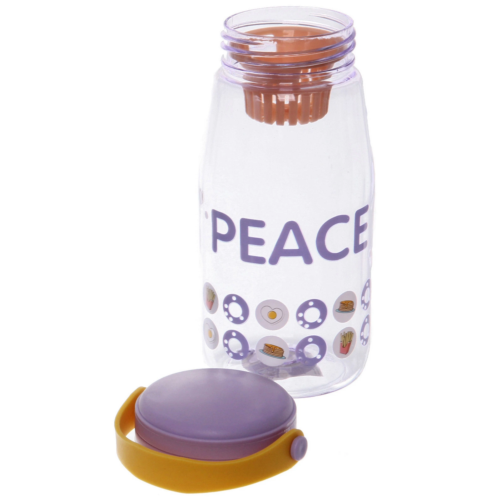 Легкий пластиковый корпус удобно держать в руке, а винтовая крышка плотно закрывается, снижая риск проливания. К горлышку прикреплена ручка, благодаря которой бутылку удобно брать с собой на прогулку, в поездку или в спортзал. Внутри предусмотрена вставка с прорезями, которая делает использование более комфортным.