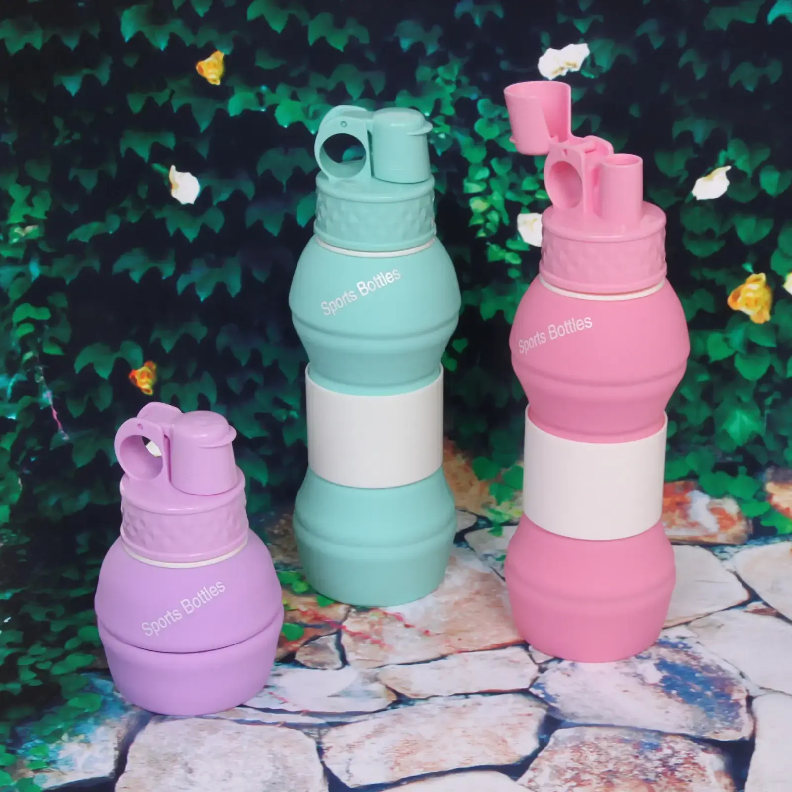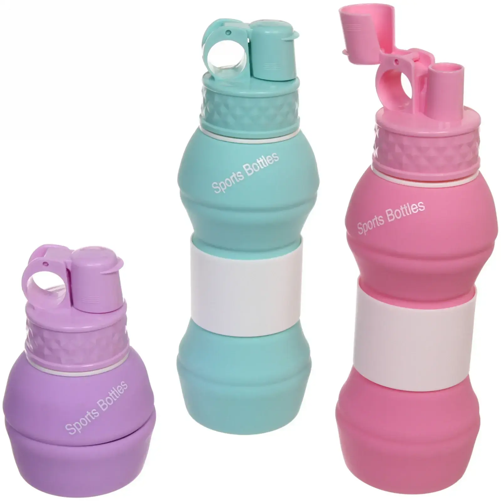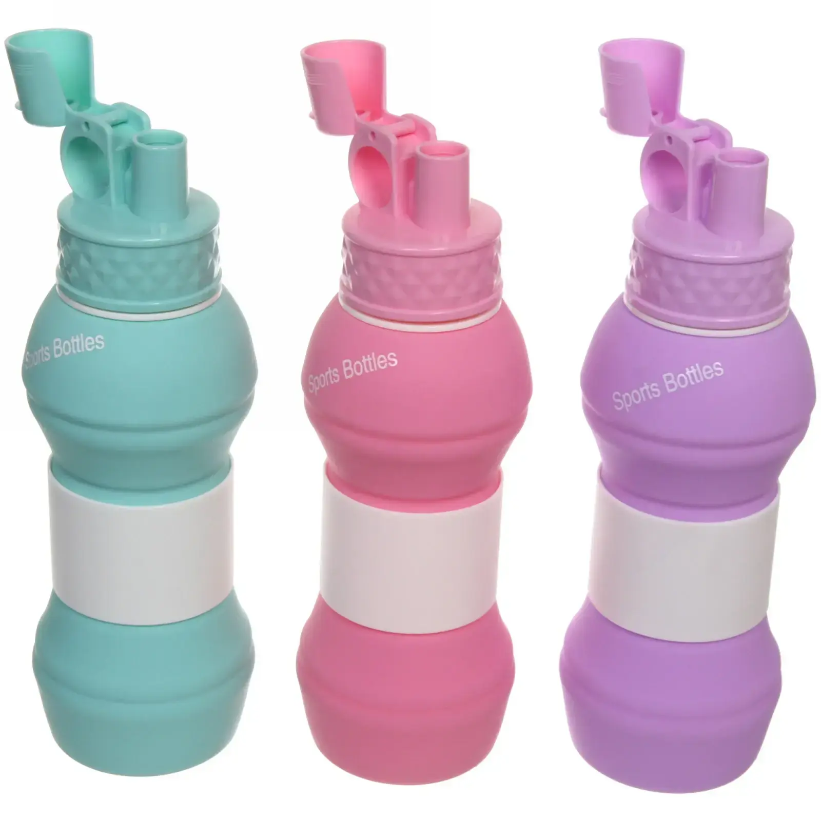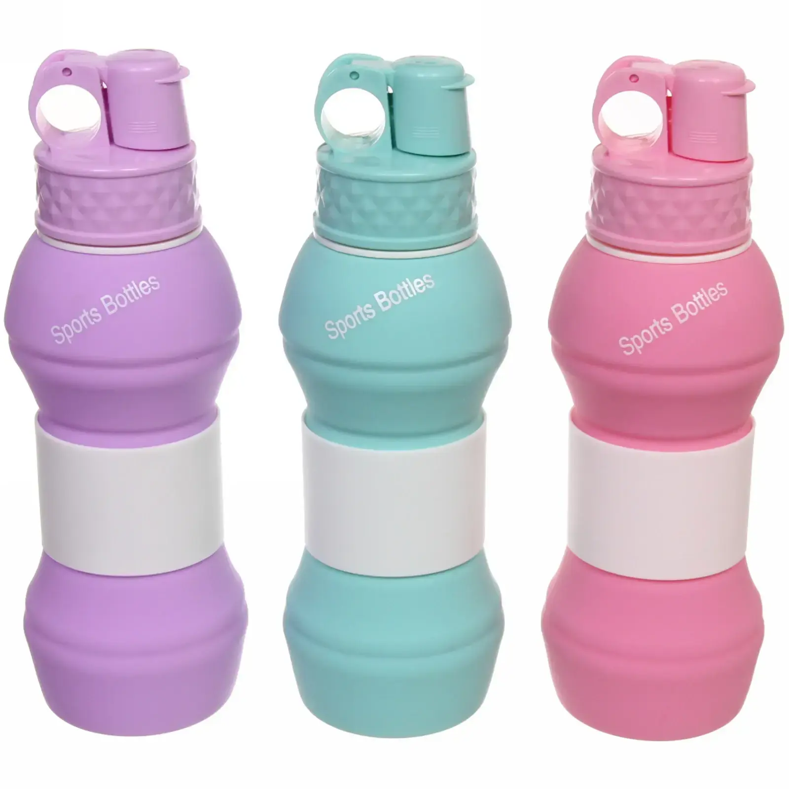 Бутылка складная силиконовая 550 мл, компактная для походов, 3 цвета: фиолетовый, бирюзовый, розовый