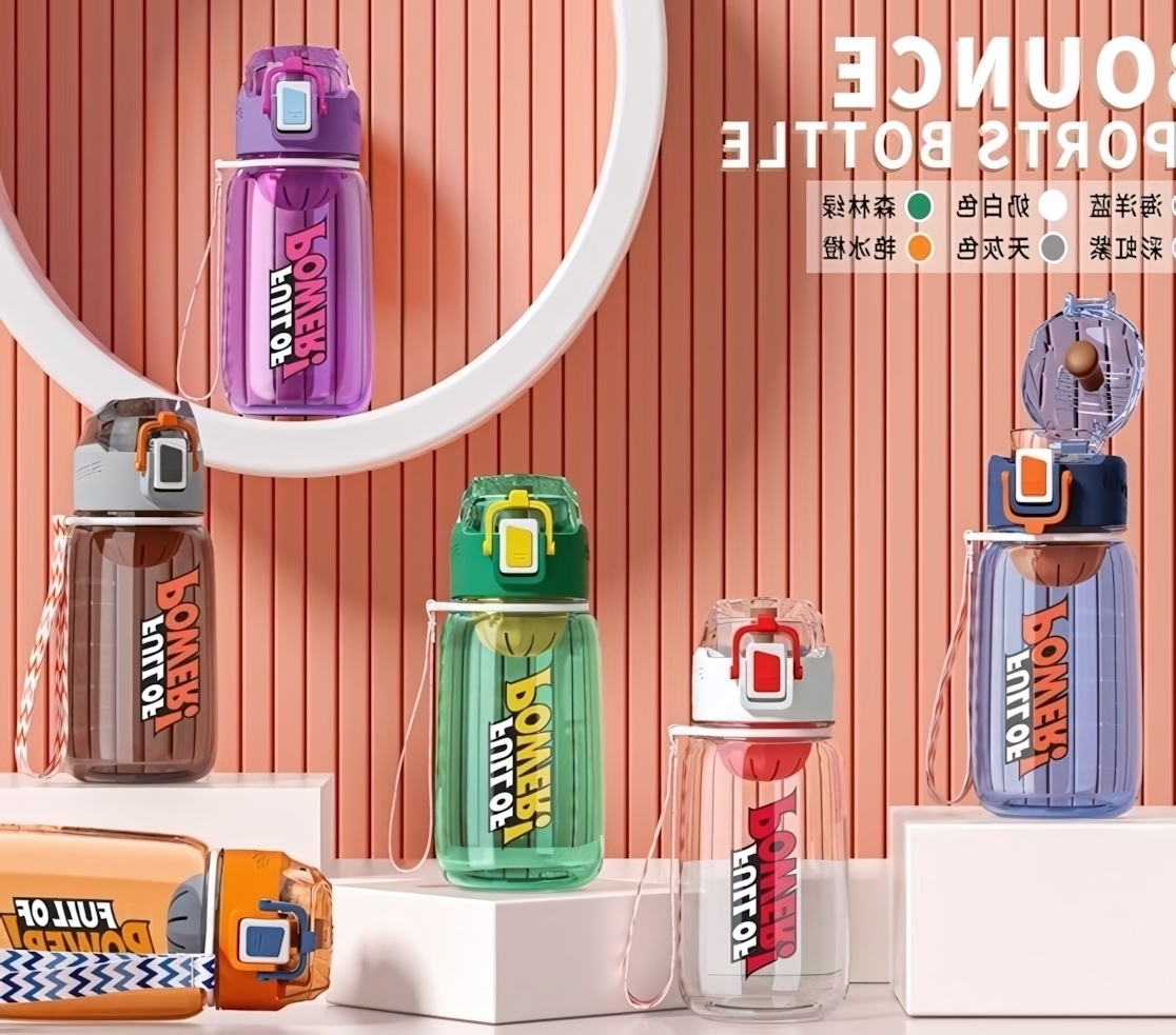 Бутылка изготовлена из качественного пластика, что делает её легкой и удобной в использовании. Она оснащена крышкой с кнопочным механизмом, что позволяет легко открывать и закрывать её одной рукой. Ремешок для переноски добавляет удобства, позволяя брать бутылку с собой куда угодно — в спортзал, на пробежку или в поход.