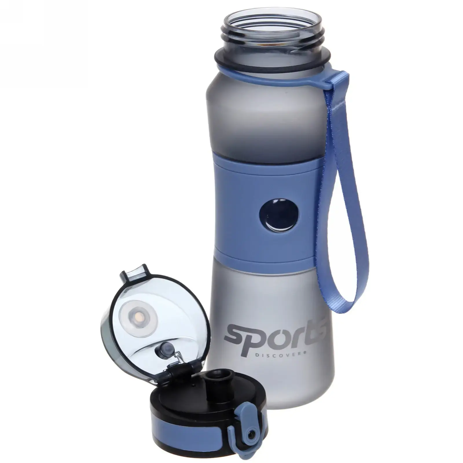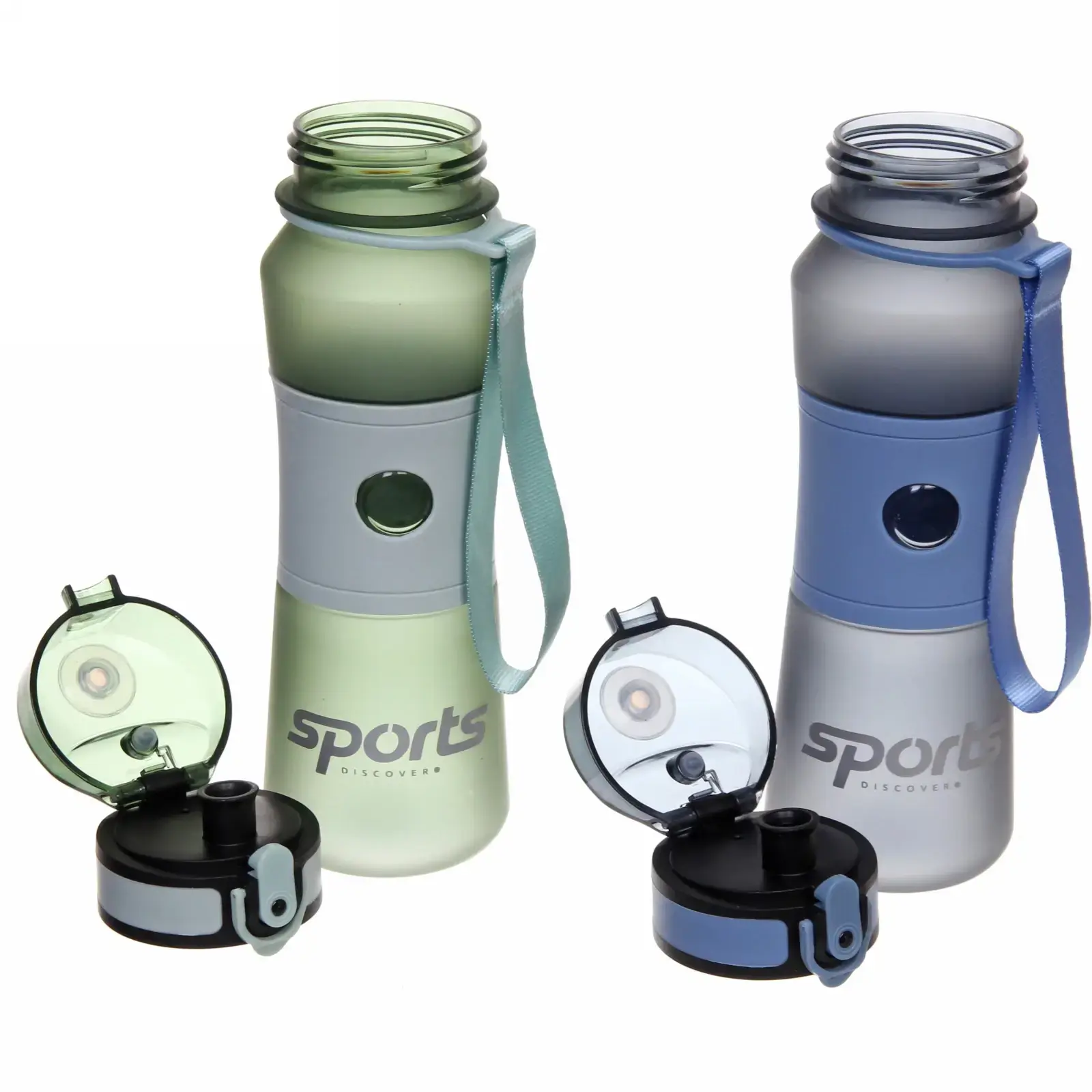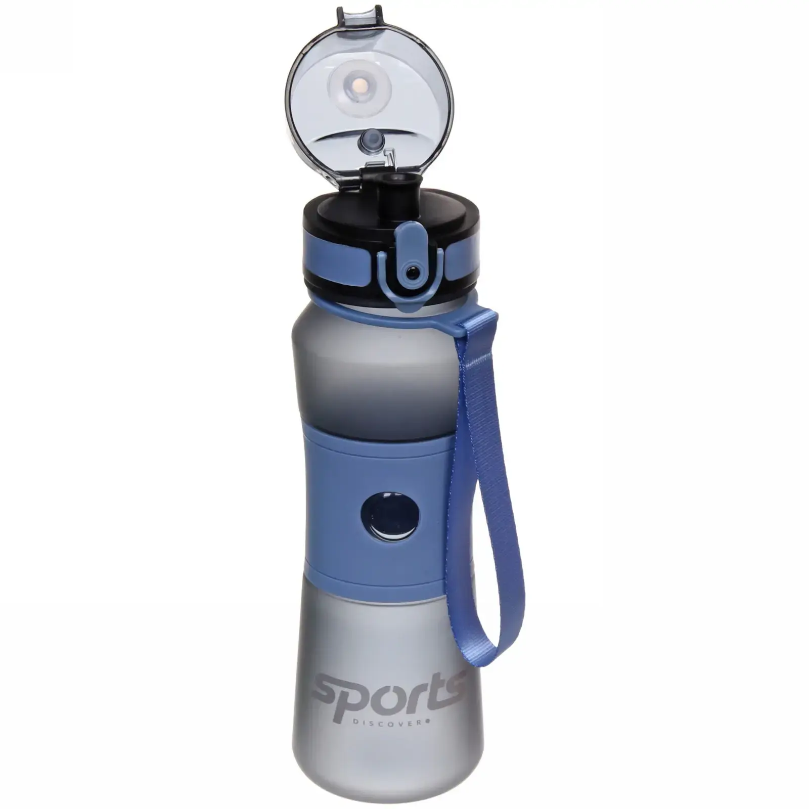 Спортивная бутылка 500 мл с защитой от протечек, пластик, ручка, окно уровня, 4 цвета