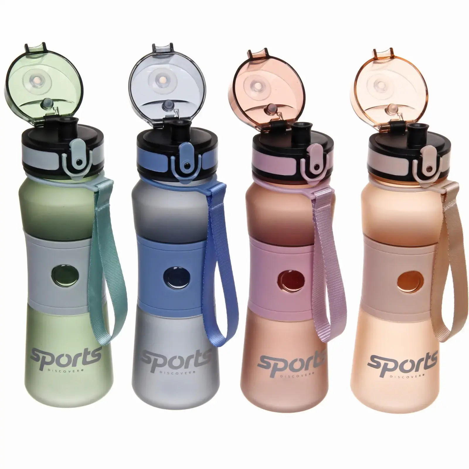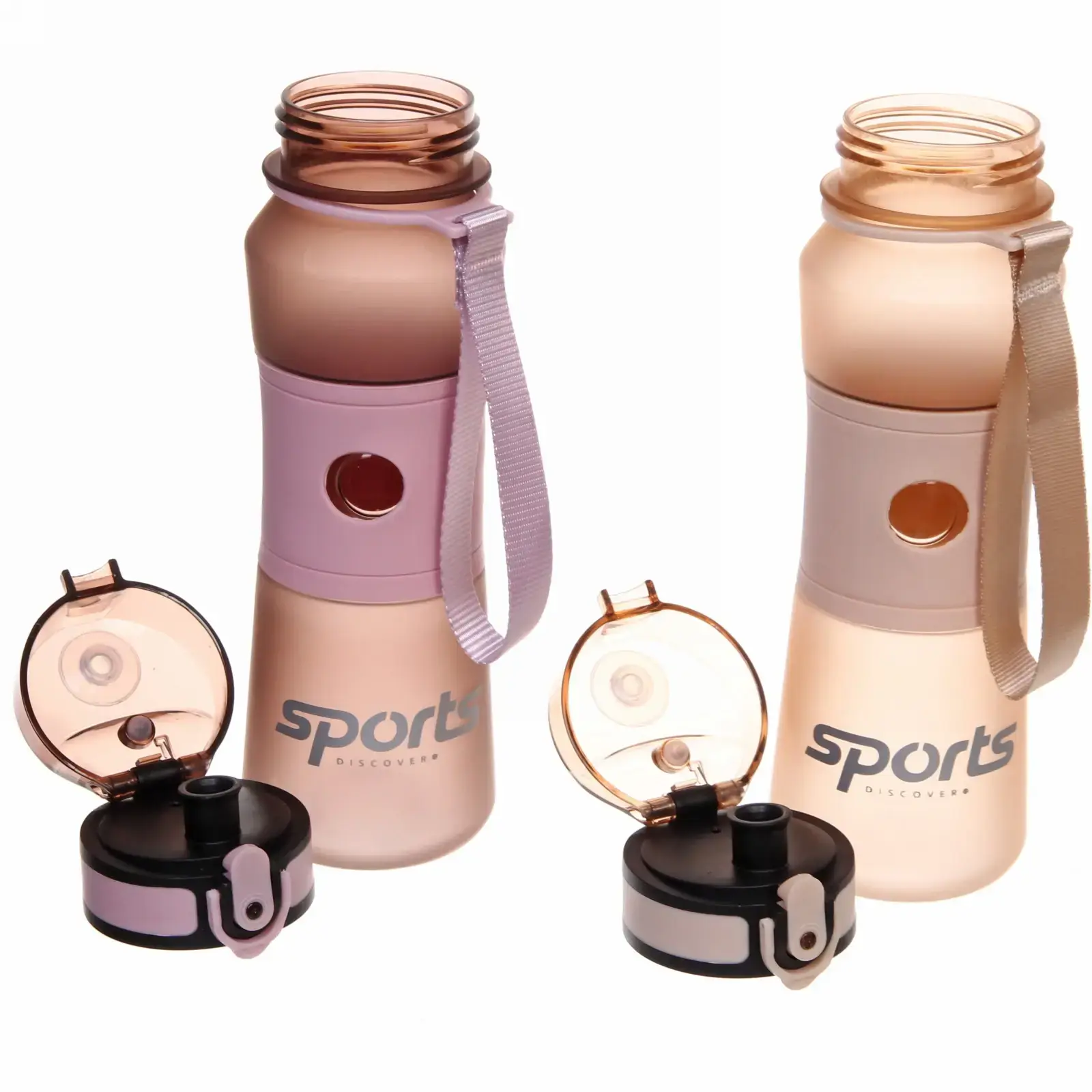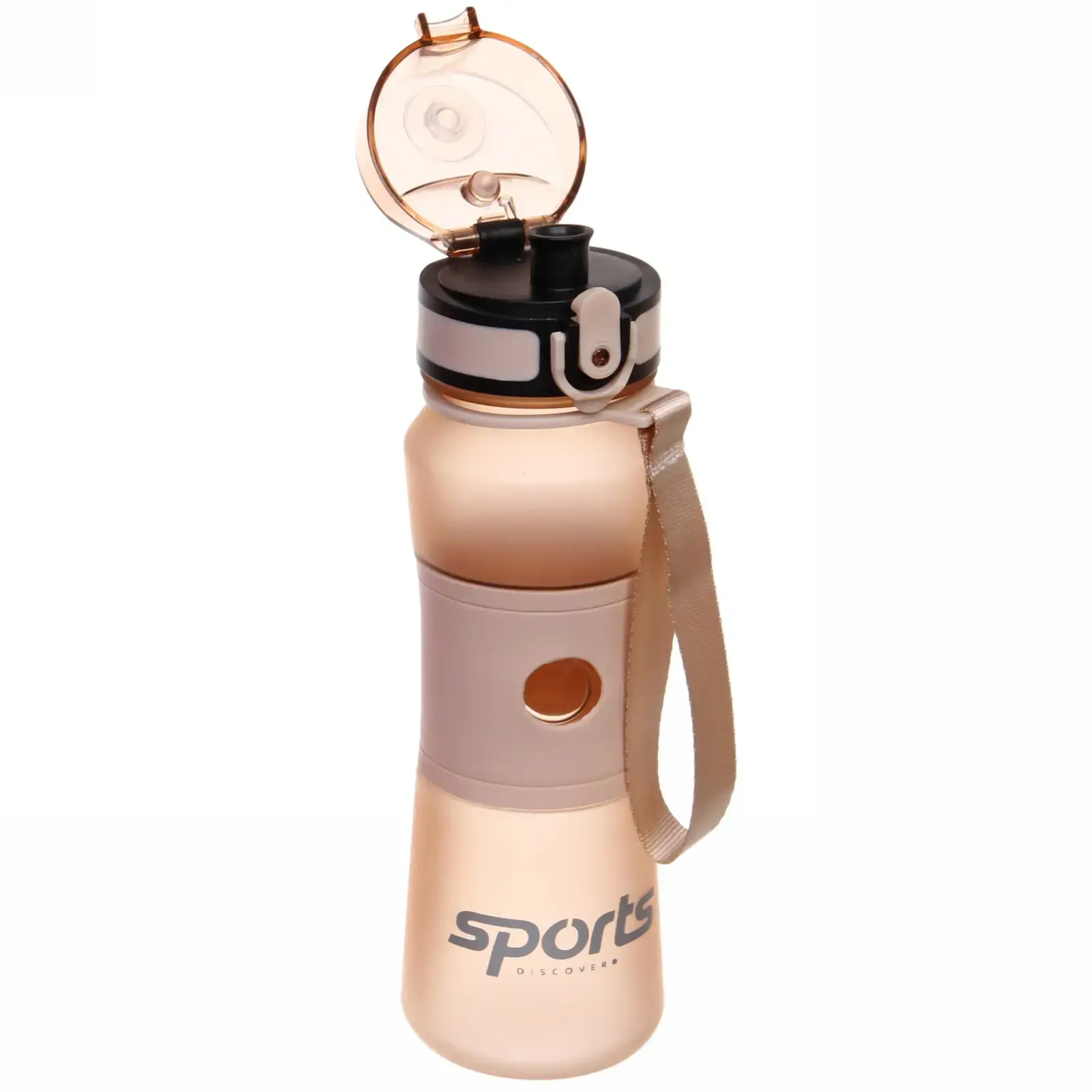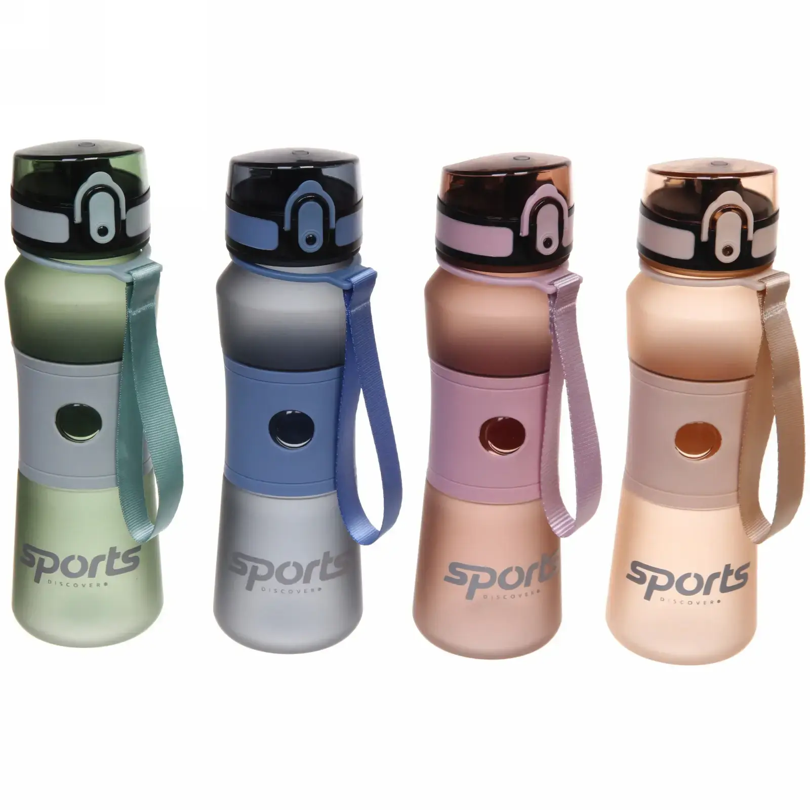 Спортивная бутылка 500 мл с защитой от протечек, пластик, ручка, окно уровня, 4 цвета