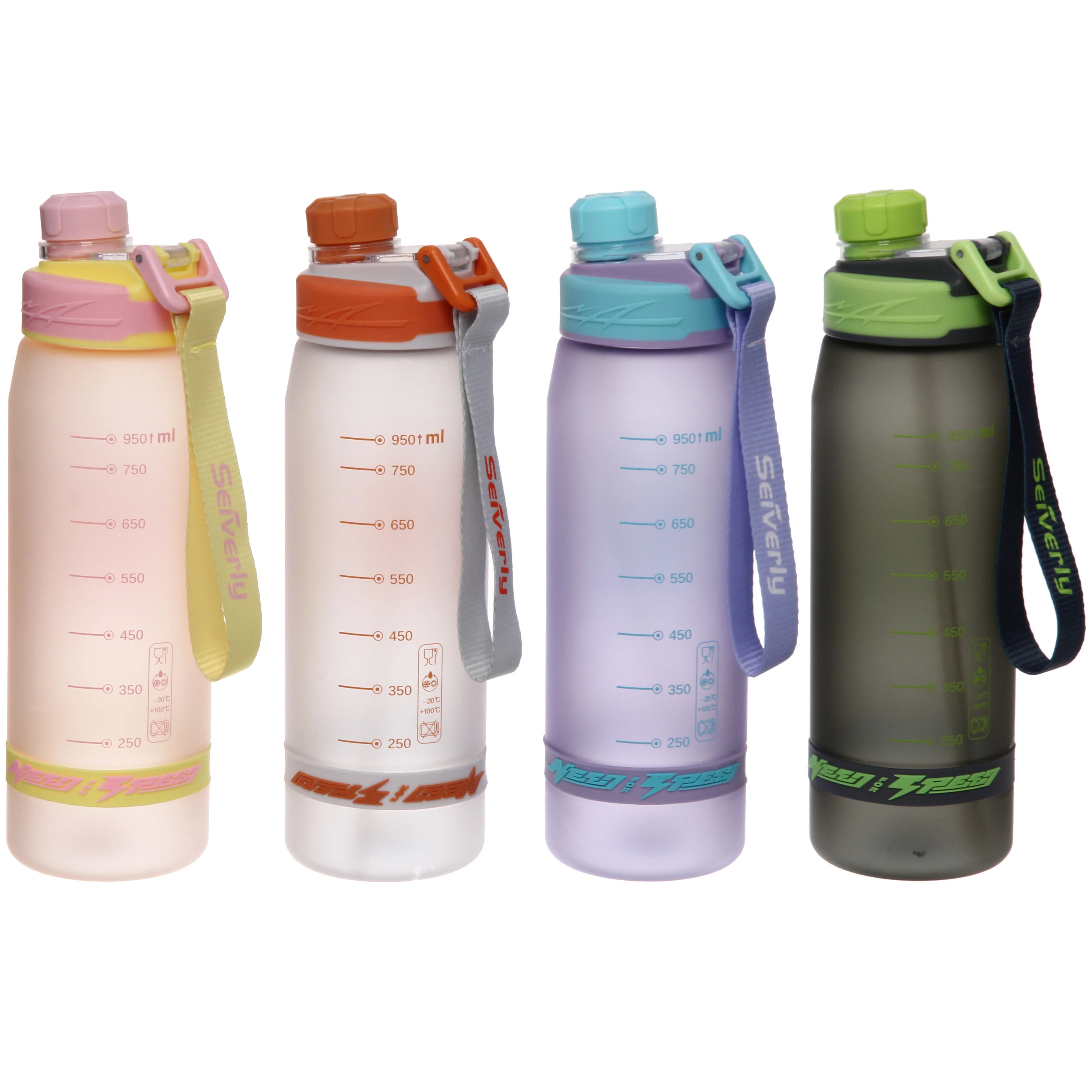 Идеальный спутник для тренировок, прогулок, походов в офис или путешествий. Эта бутылка объёмом 950 мл создана, чтобы всегда поддерживать ваш водный баланс в течение дня. Её эргономичная форма удобно лежит в руке, а прочный ремешок позволяет носить её на запястье или пристегнуть к рюкзаку.