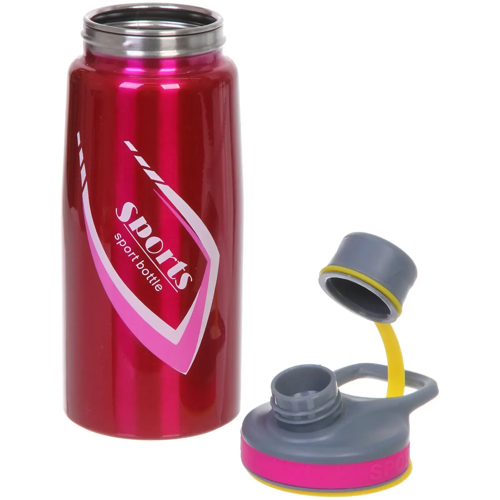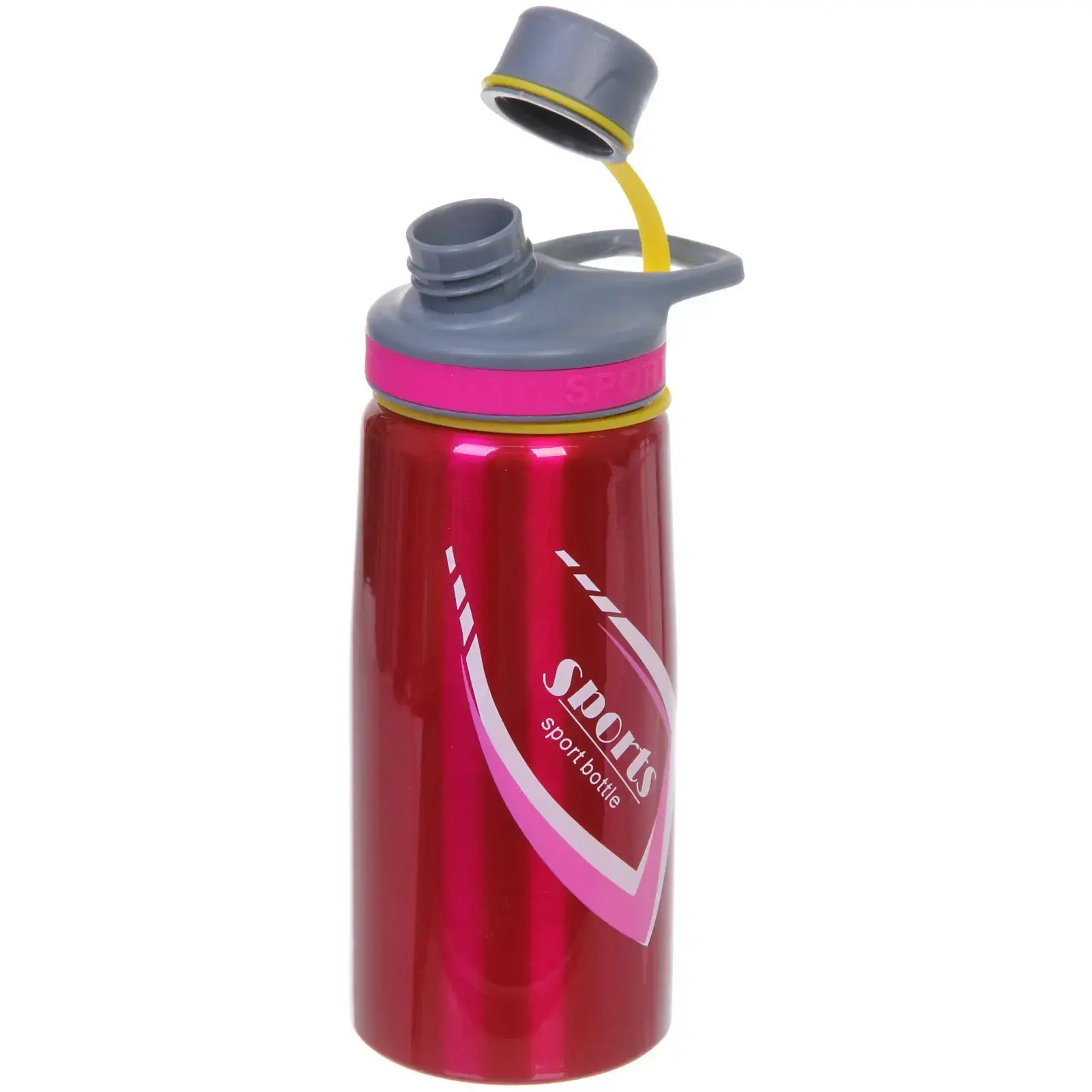 Почему стоит выбрать именно эту бутылку? Во-первых, ее стильный дизайн с диагональными линиями и надписями «SPORTS» и «sport bottle» в белом цвете привлекает внимание и подчеркивает вашу индивидуальность. Во-вторых, она идеально подходит для спортивных мероприятий, тренировок и активного отдыха, обеспечивая легкость и удобство в использовании.