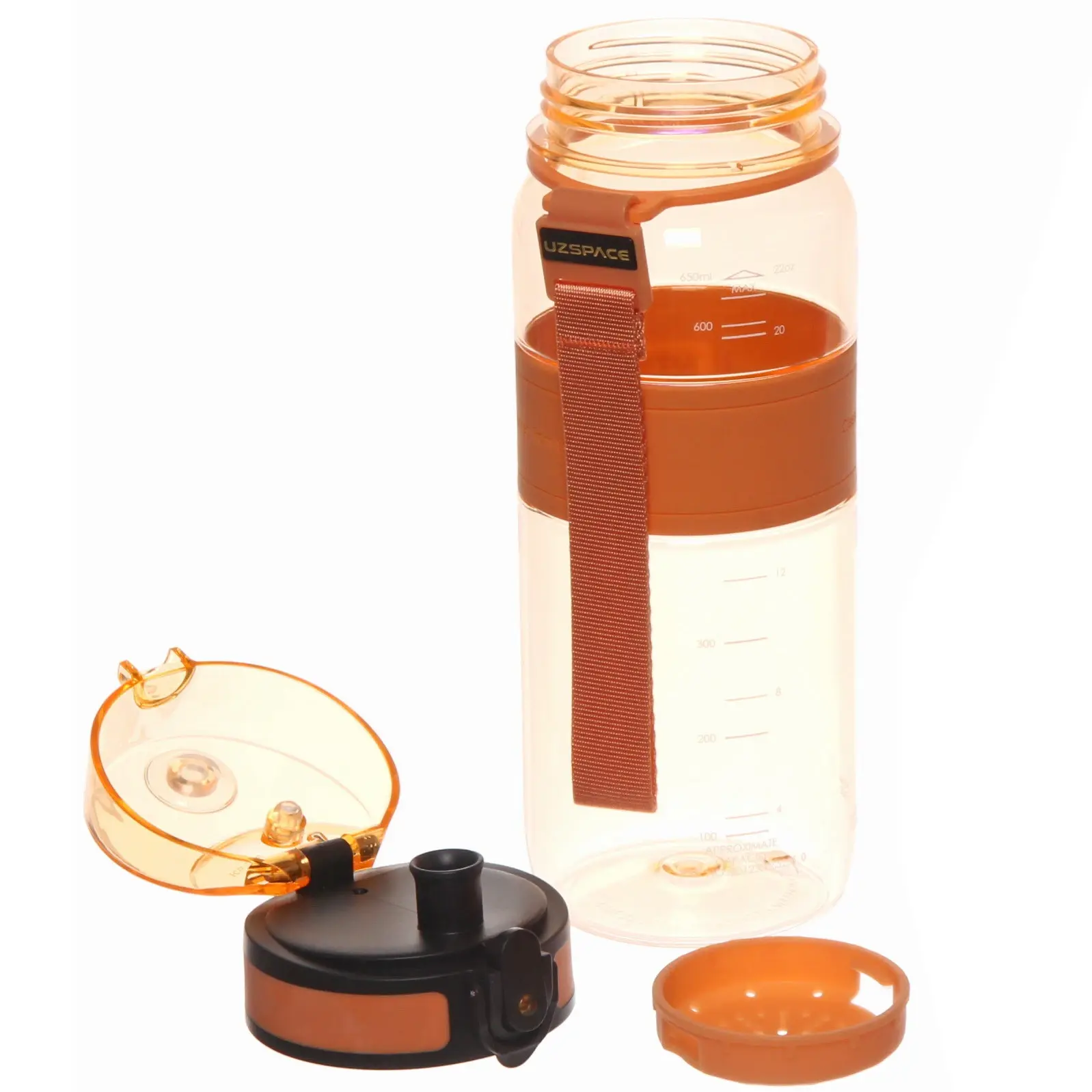 Бутылка UZSPACE Magic Ion 5029 изготовлена из прочного пластика и оснащена надежной крышкой с механизмом открывания, что позволяет легко наполнять и пить из нее одной рукой. Силиконовый поясок обеспечивает надежный захват и возможность крепления к рюкзаку или поясу, что делает ее идеальной для активных людей.