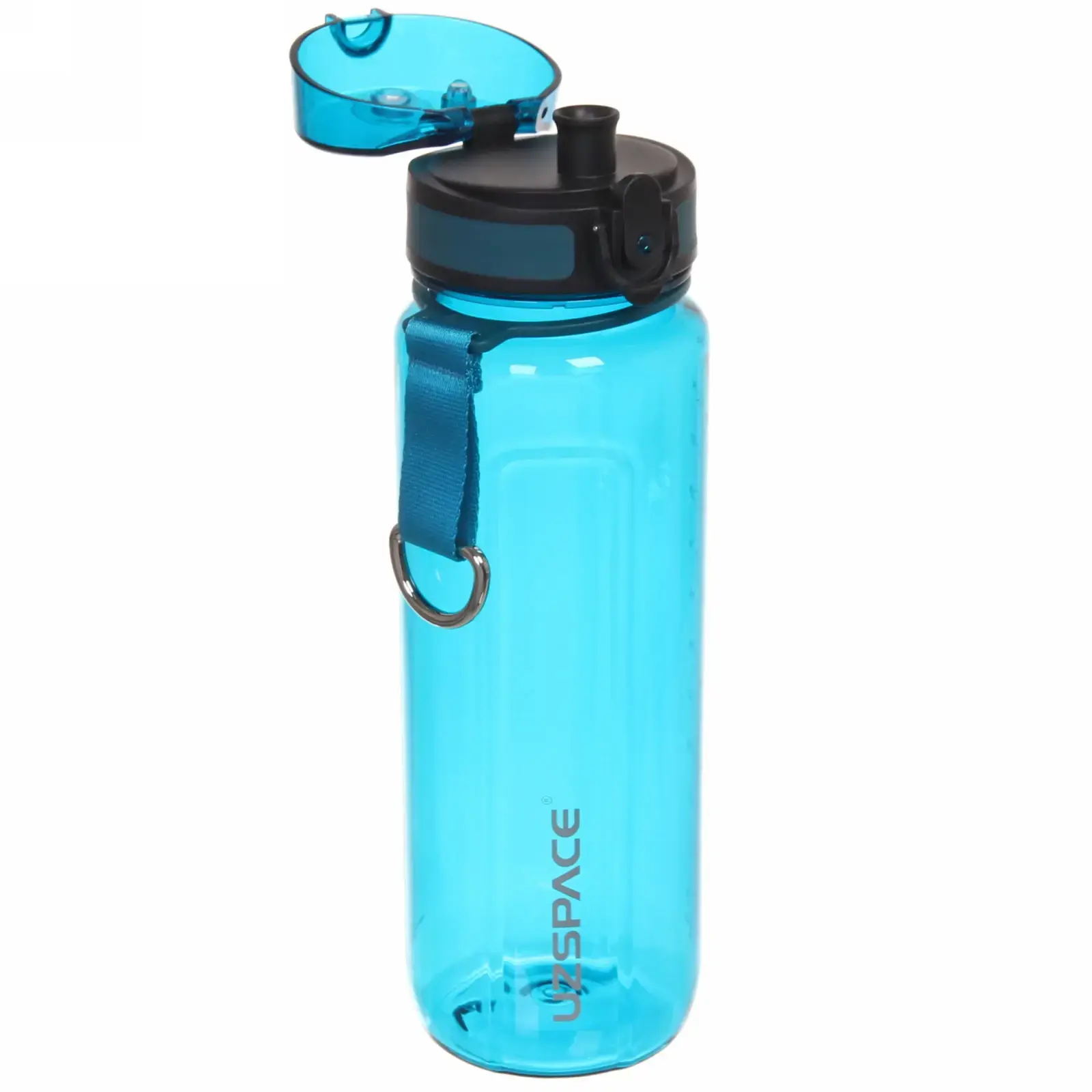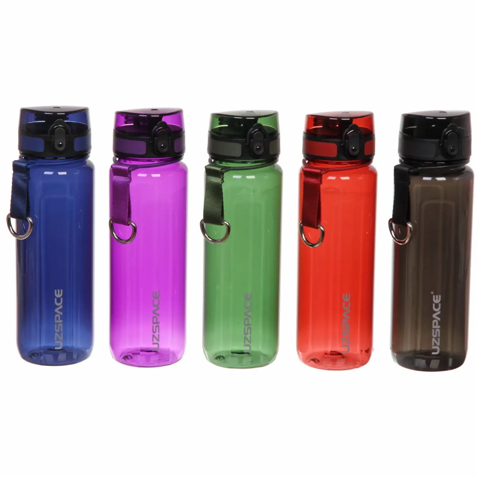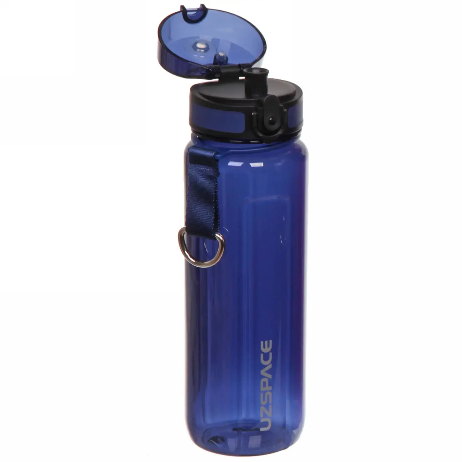 Бутылка спортивная UZSPACE U-type 6019, 750 мл, пластик, крышка с кнопкой, петля для крепления, 5 цветов