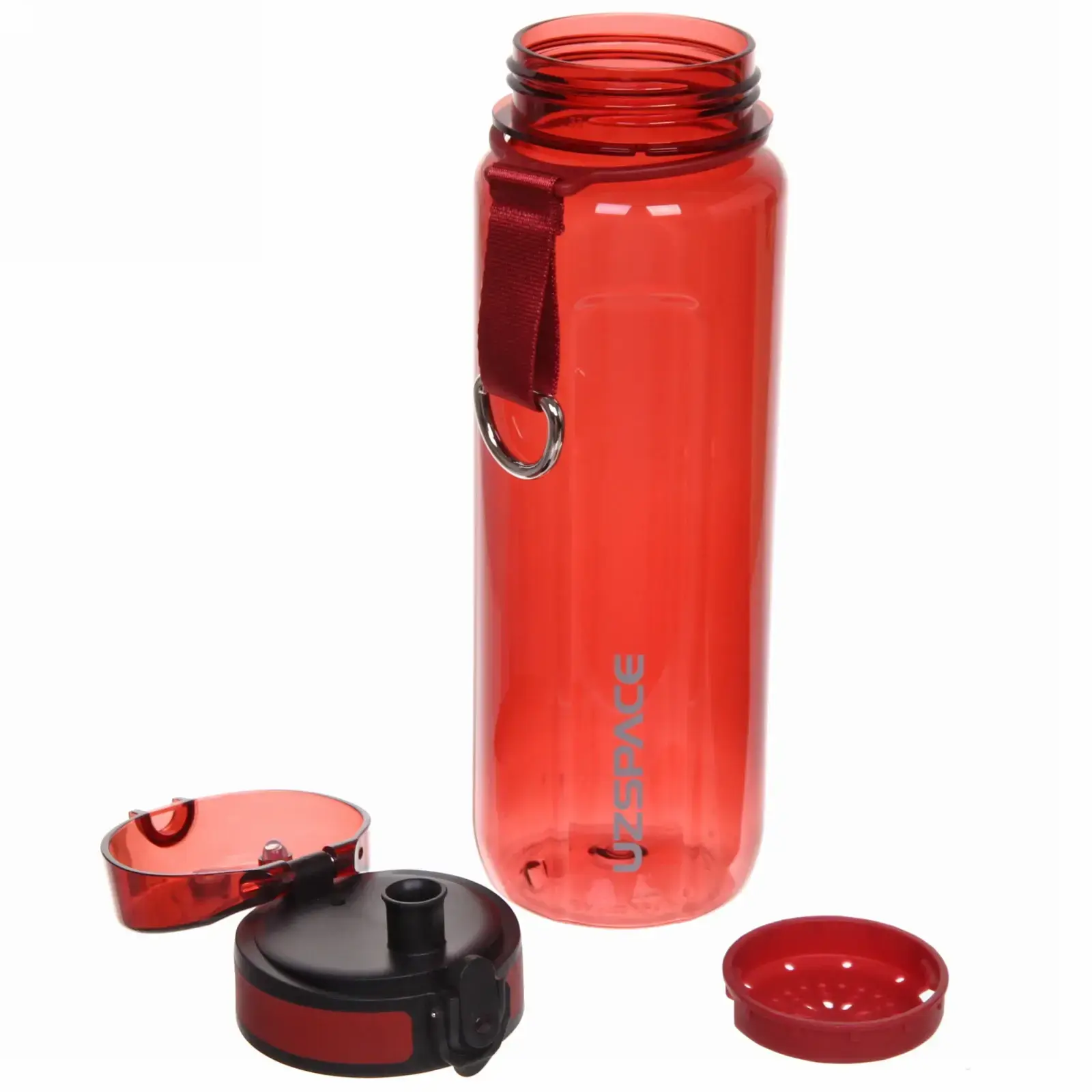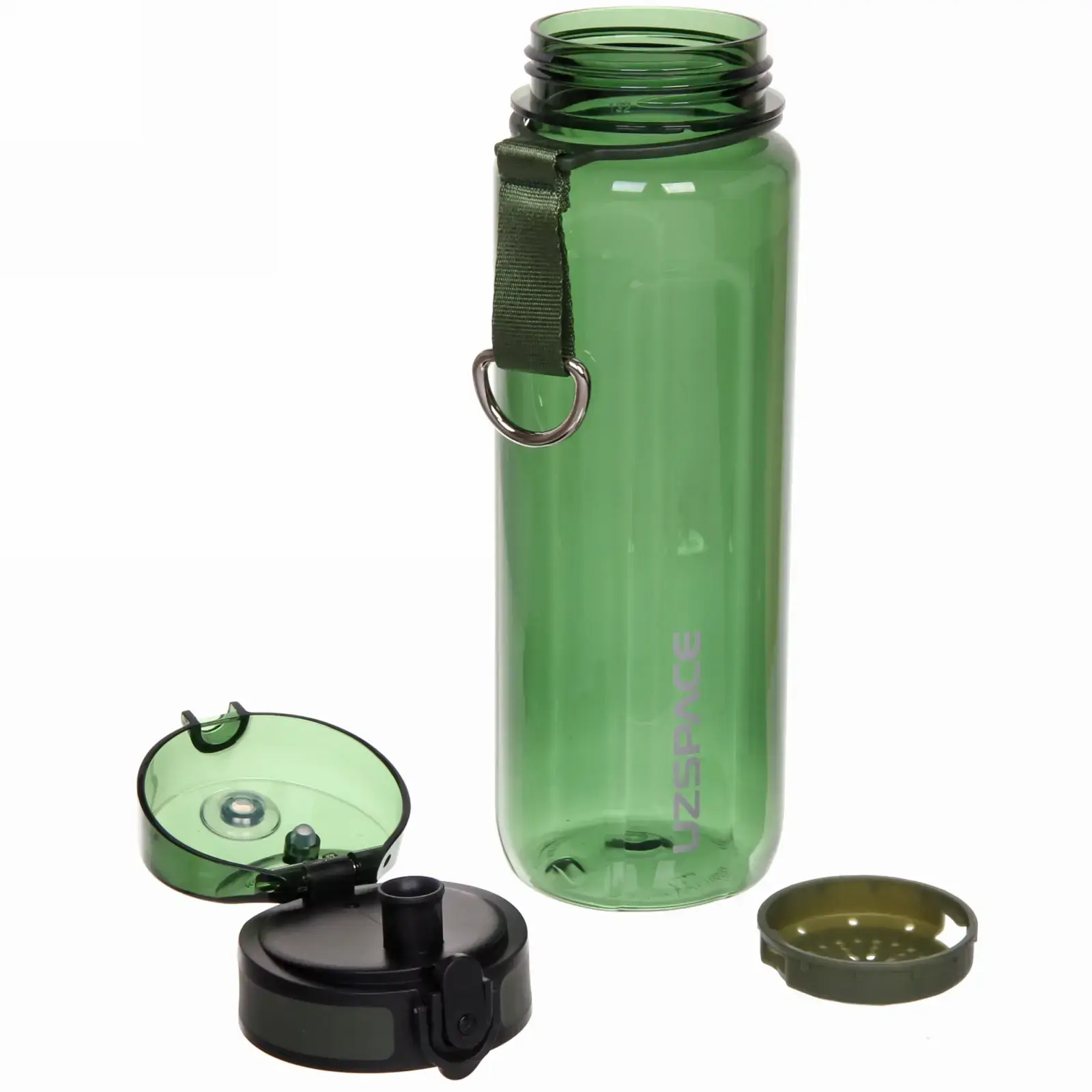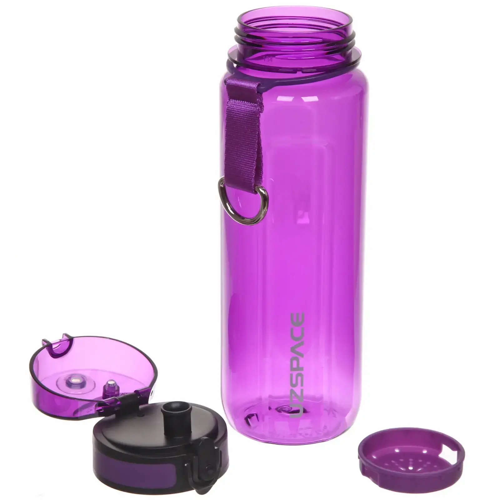 Бутылка спортивная UZSPACE U-type 6019, 750 мл, пластик, крышка с кнопкой, петля для крепления, 5 цветов