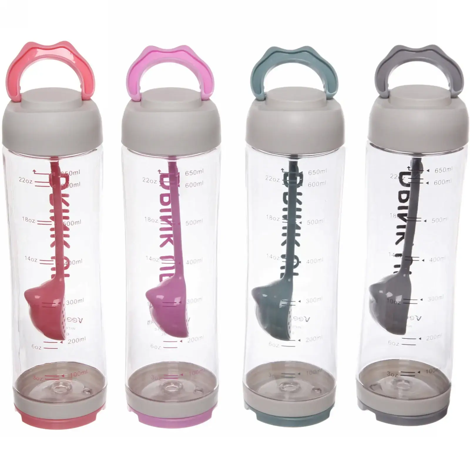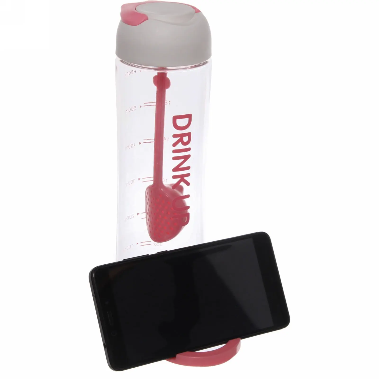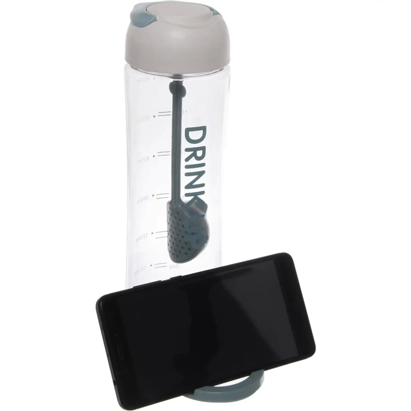 Бутылка изготовлена из прочного прозрачного пластика, что позволяет контролировать уровень напитка. Емкость 650 мл оптимальна для ежедневного использования. Стильный дизайн с надписью 'DRINK UP' мотивирует поддерживать водный баланс.