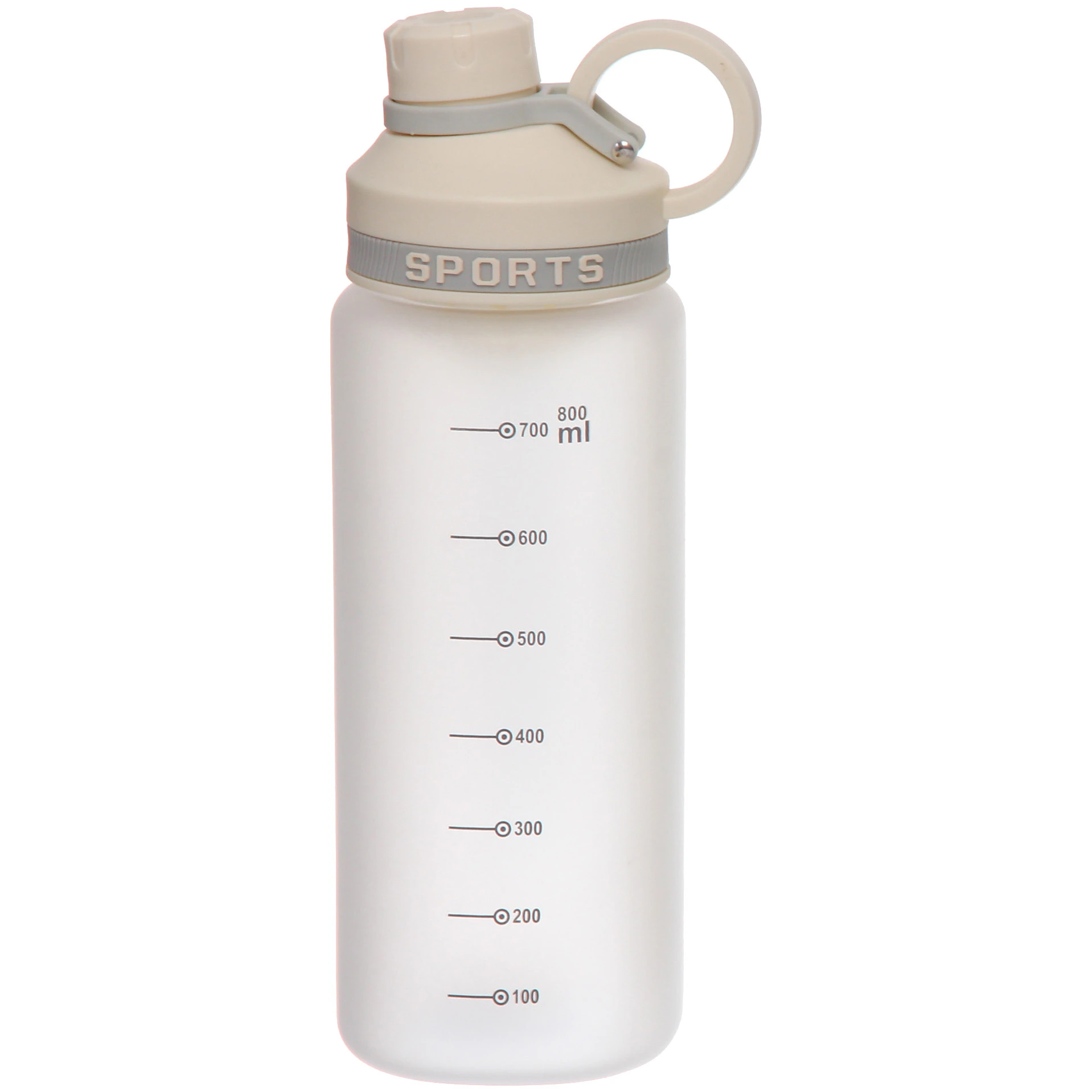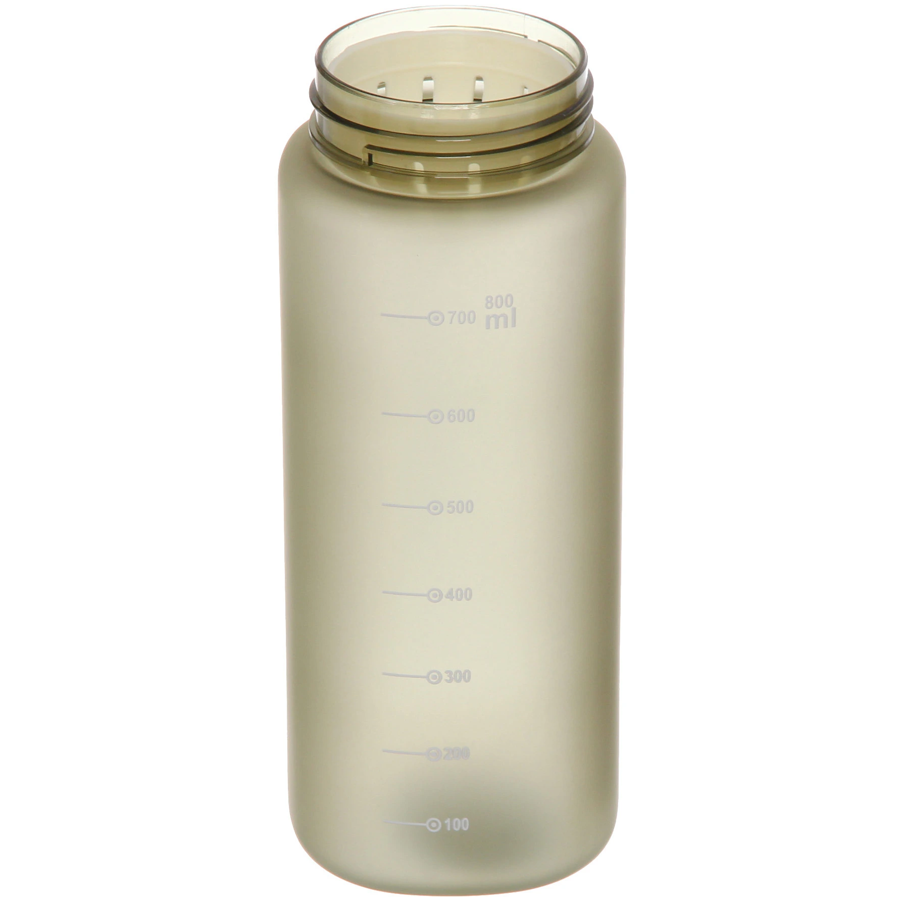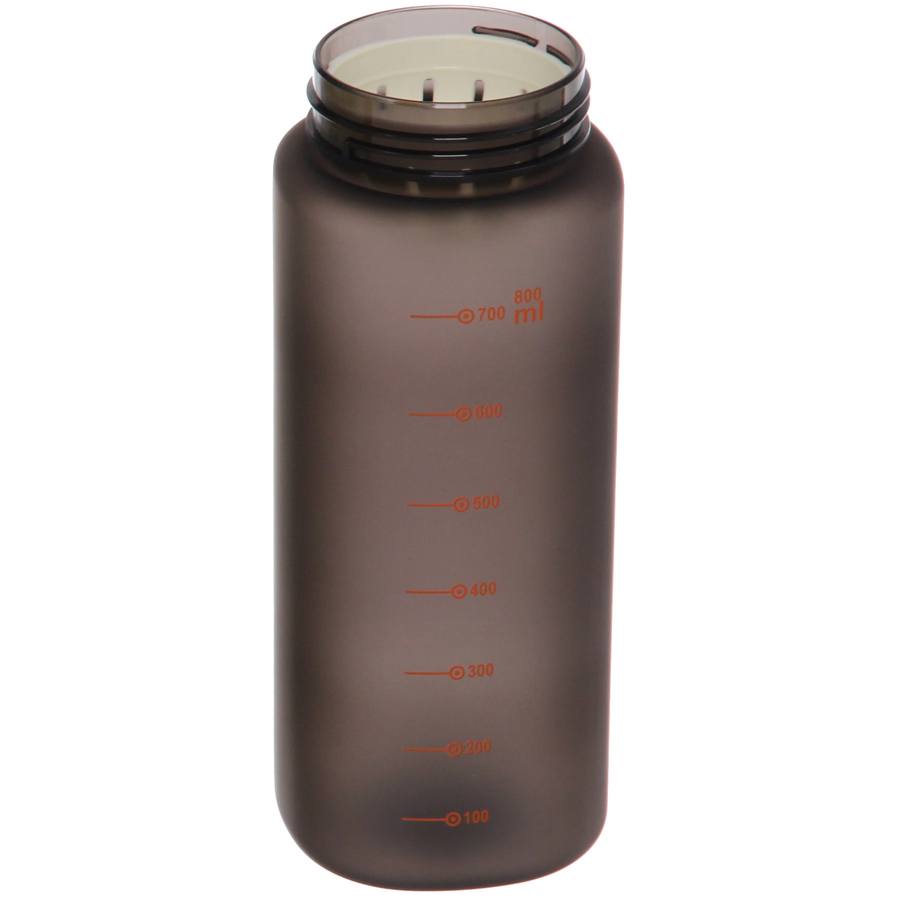 Бутылка оснащена чёткой мерной шкалой с делениями от 100 до 800 мл, что позволяет легко контролировать объём выпитой воды и соблюдать питьевой режим. Широкая горловина упрощает мытьё и наполнение, а также даёт возможность добавлять кусочки фруктов или льда для освежающего вкуса.