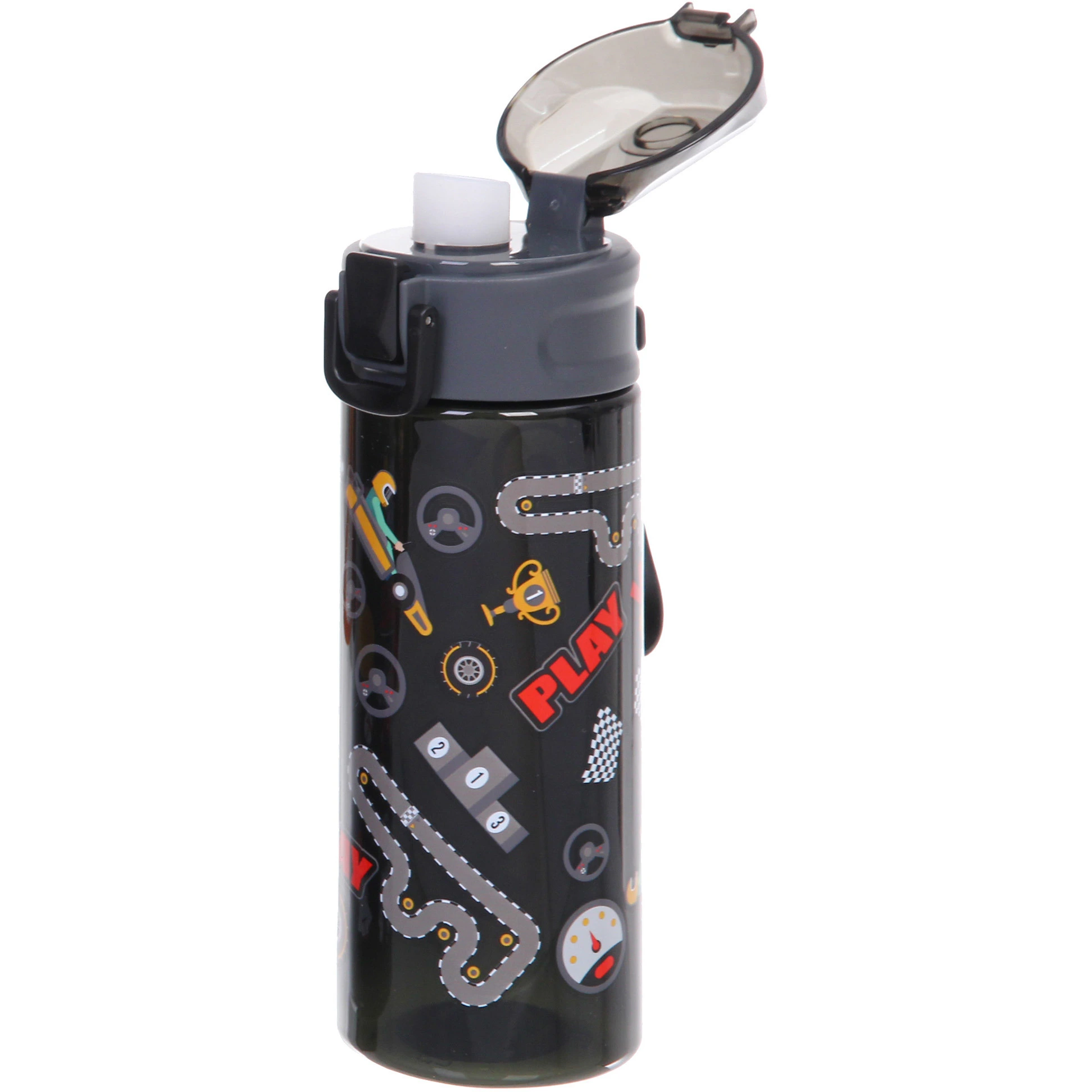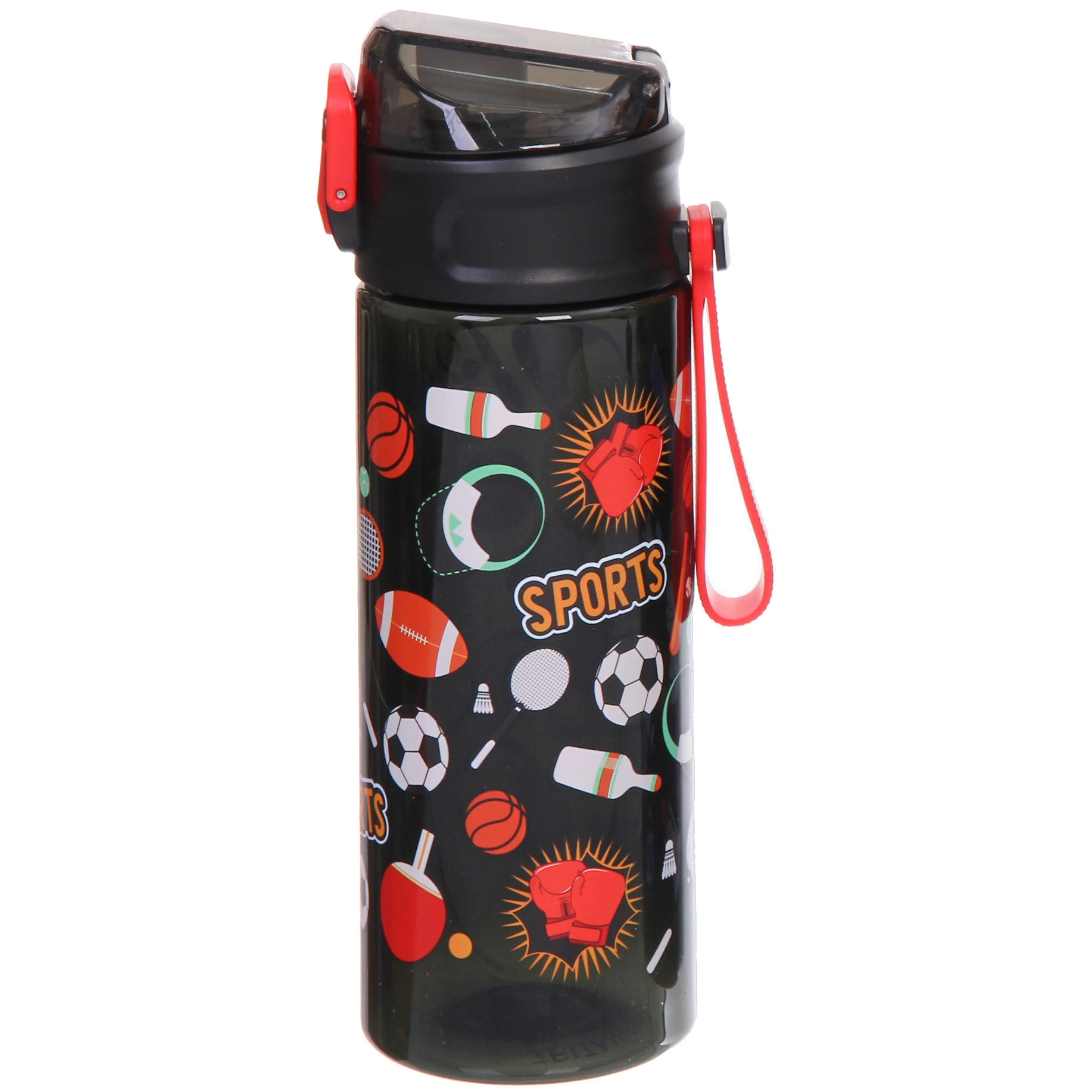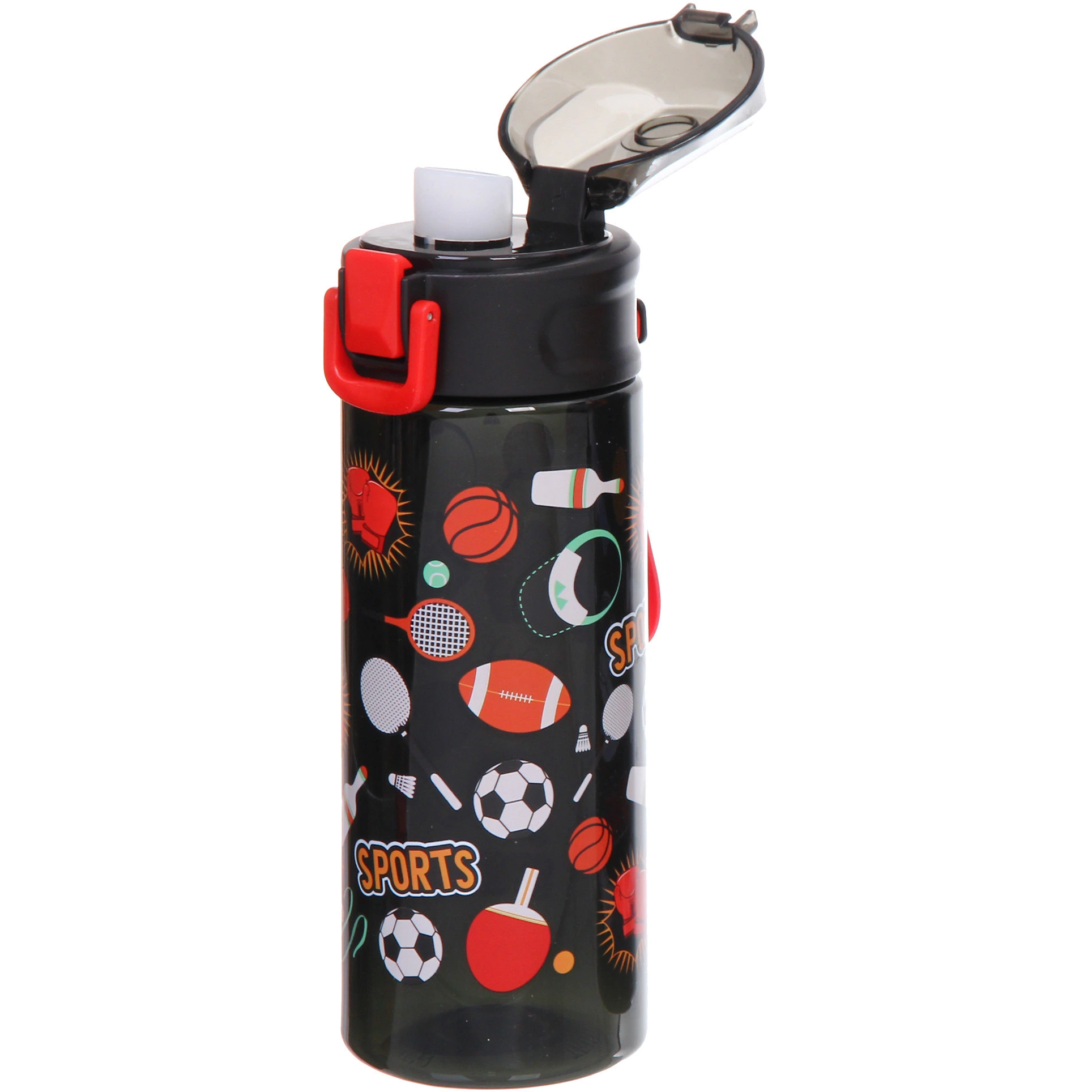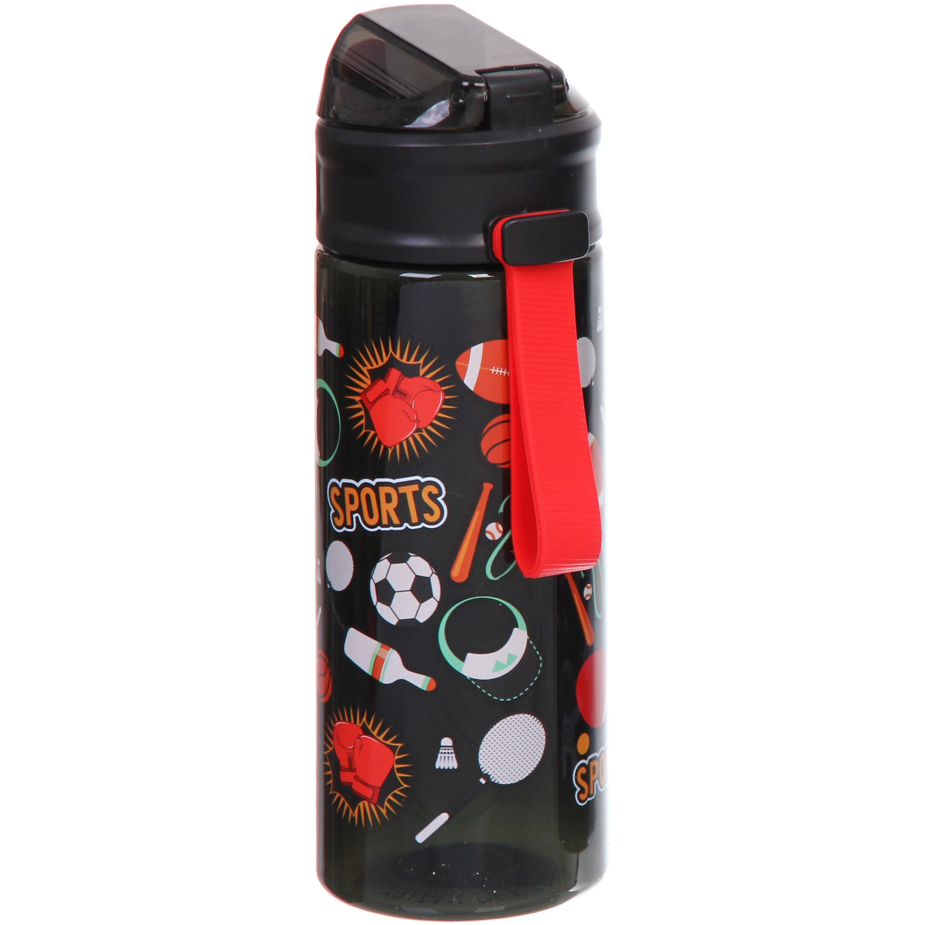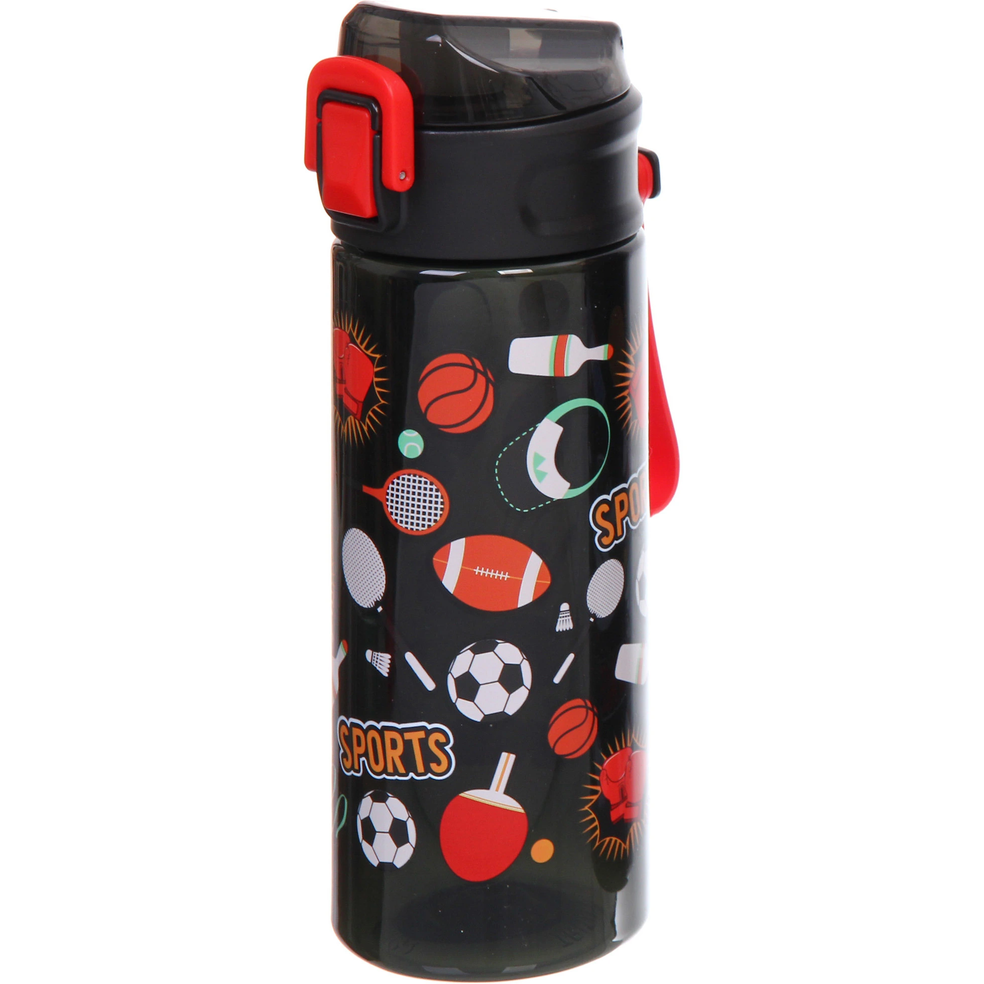 Важно: Товар поставляется в цветовом ассортименте. Конкретный дизайн (спорт, космос или гонки) и цвет ремешка (красный, оранжевый или тёмный) определяются случайным образом из наличия на складе. Объём: 600 мл.