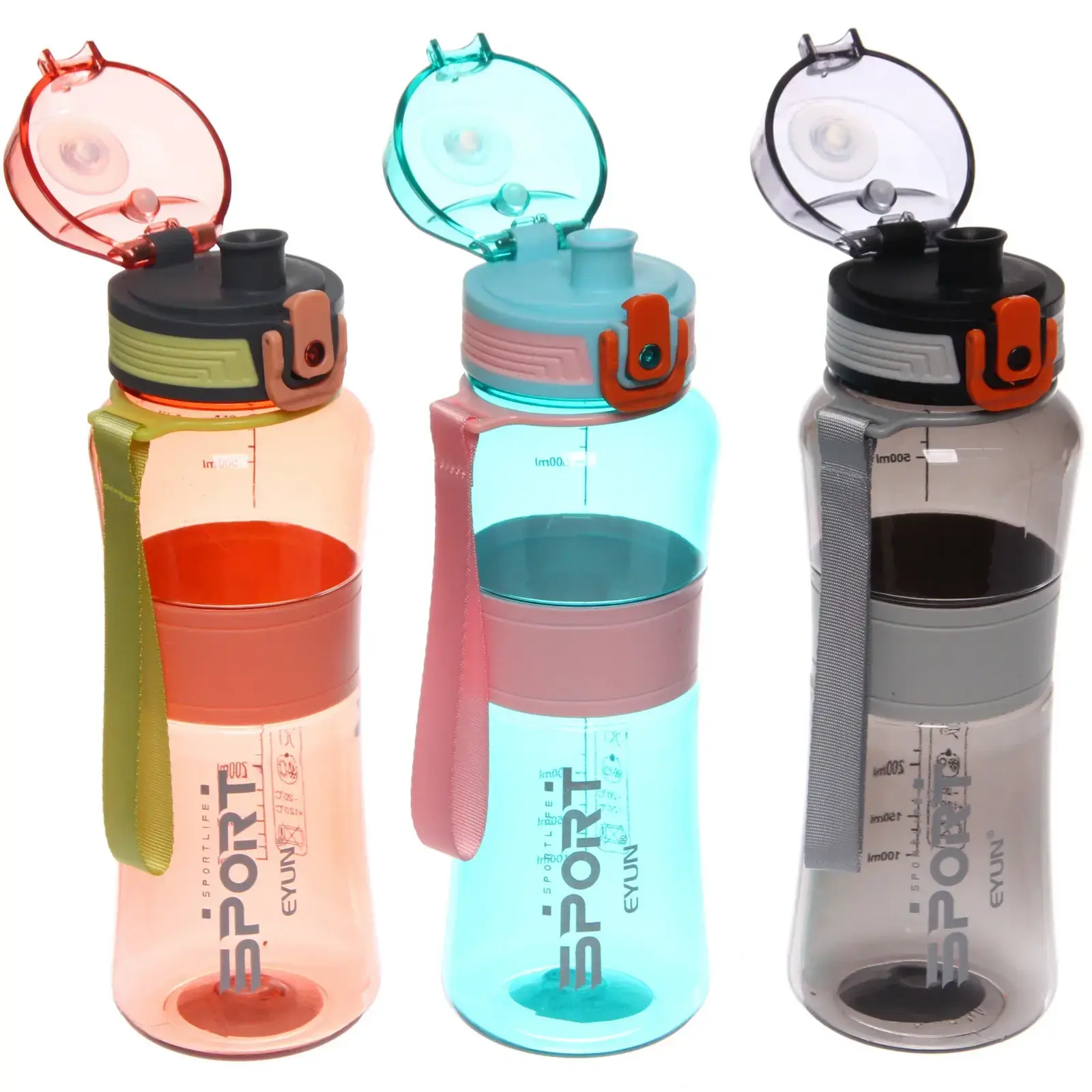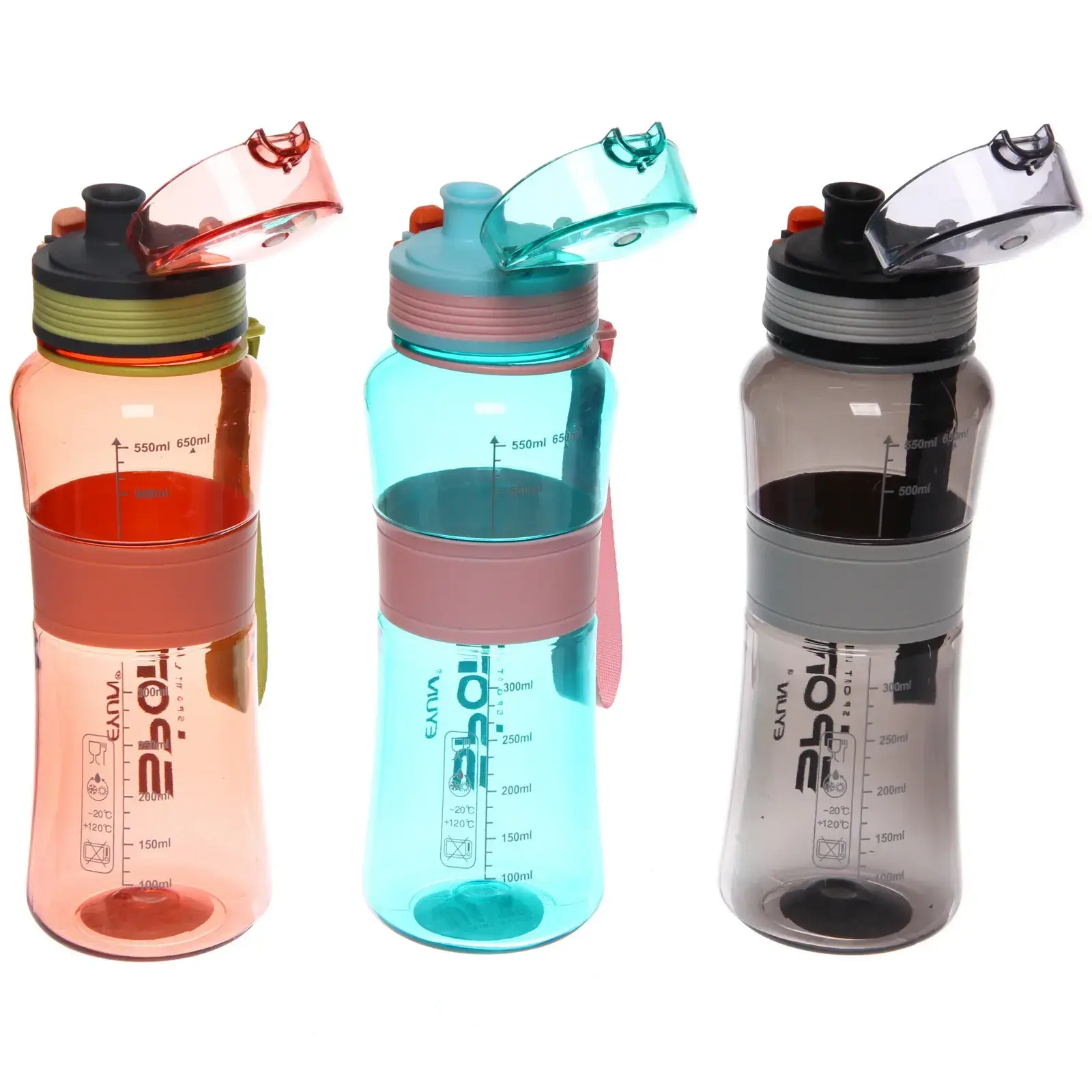 Бутылка спортивная 650 мл с мерной шкалой, герметичная крышка, ручка, поликарбонат, разные цвета