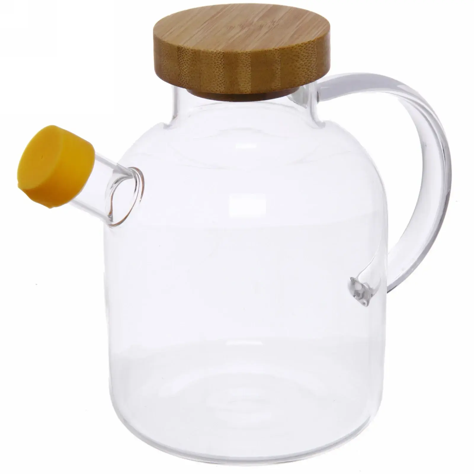 Объем бутылки составляет 600мл, что делает ее идеальной для хранения различных жидкостей. Бамбуковая крышка обеспечивает надежное закрытие, а прозрачное стекло позволяет видеть содержимое. Размеры бутылки идеально подходят для размещения на кухонной полке или столе, а ее современный дизайн впишется в любой интерьер.