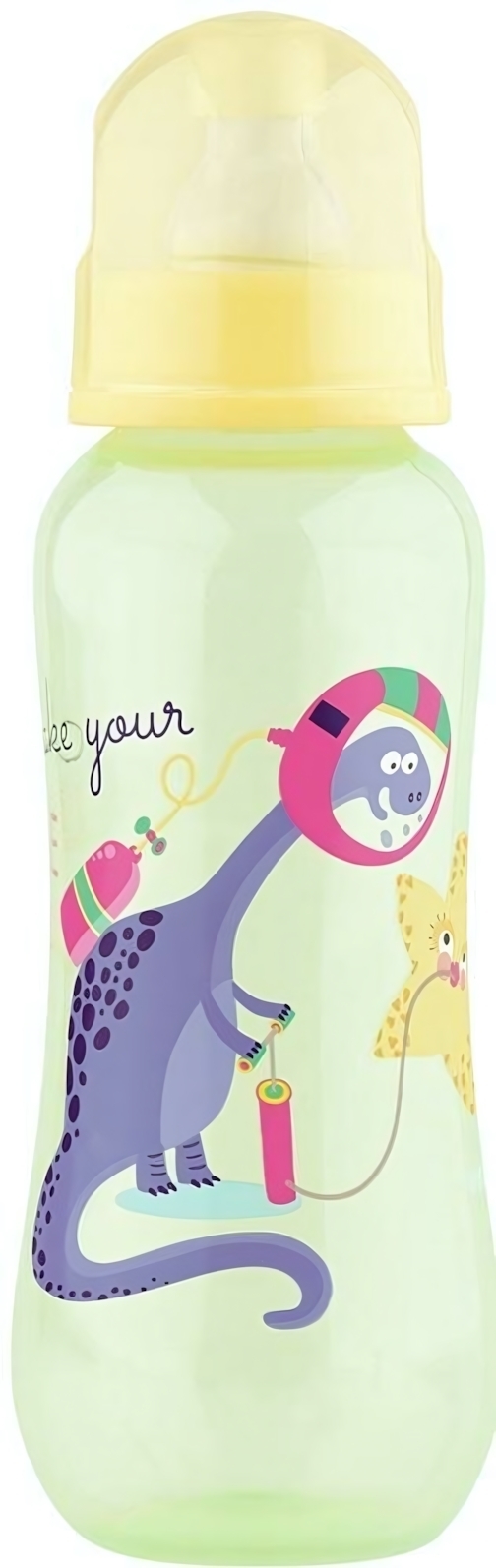 Бутылочка выполнена из качественного пластика, который не содержит вредных веществ. Светло-зеленый цвет и желтая крышечка делают ее стильной и современной. Размеры бутылочки соответствуют стандартам для детских товаров, что гарантирует ее совместимость с большинством сосок и аксессуаров.