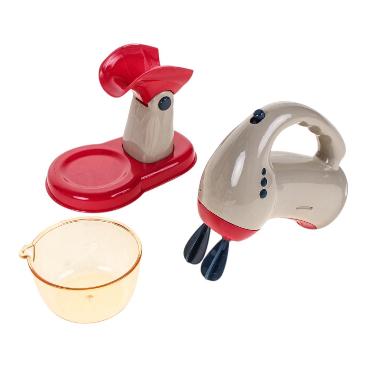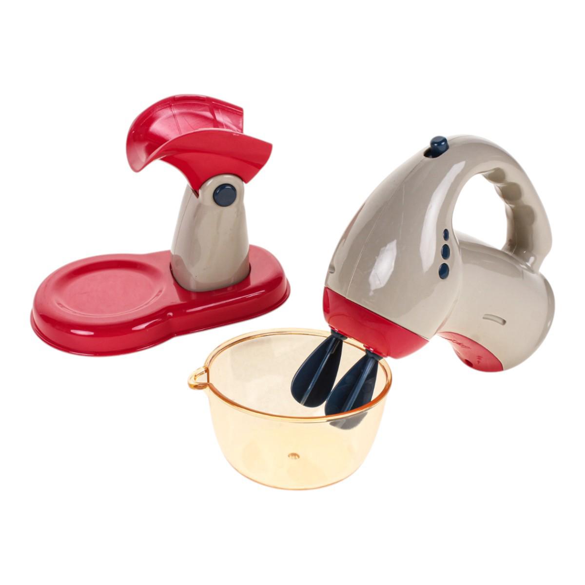 - В комплекте: игрушечный миксер, прозрачный контейнер, подставка.