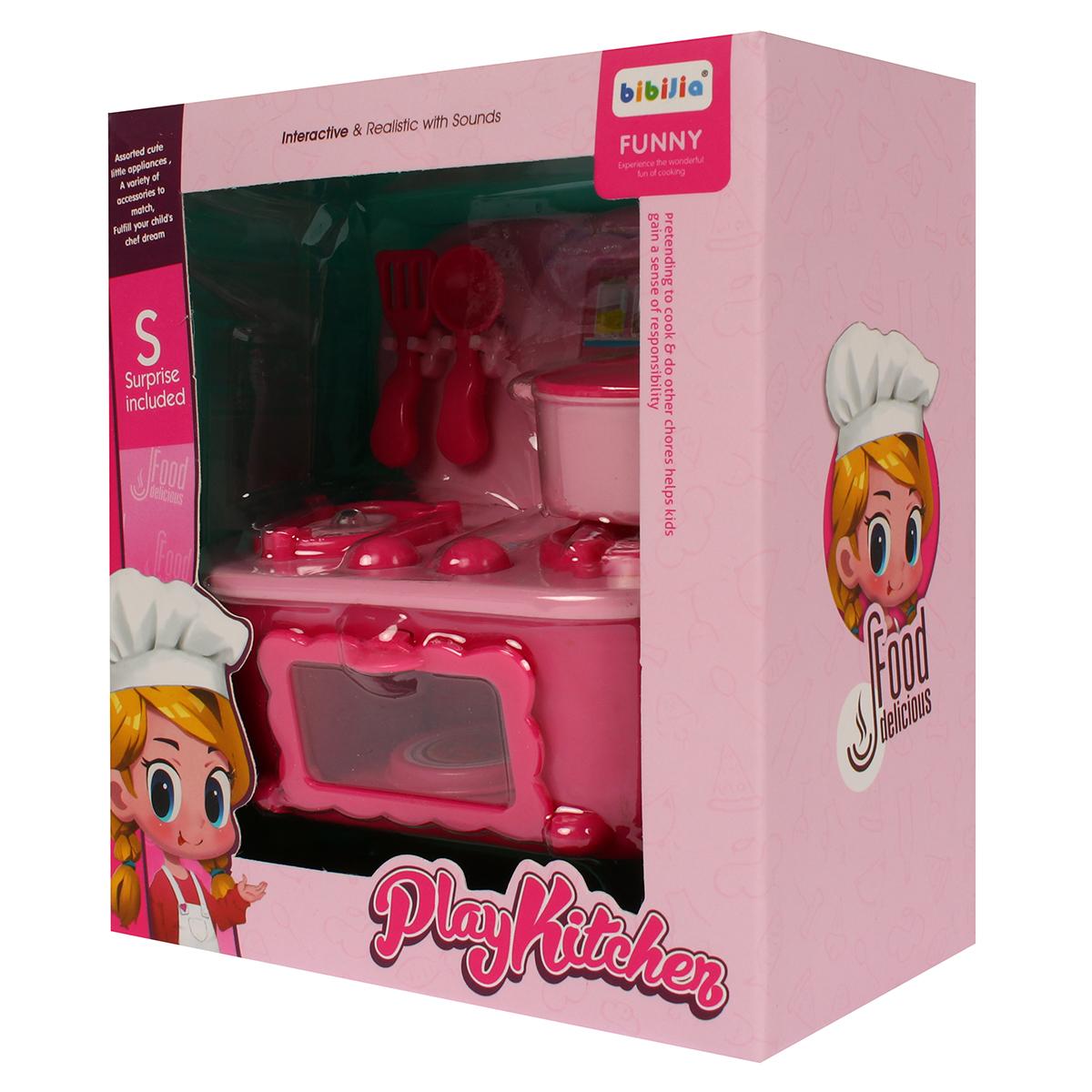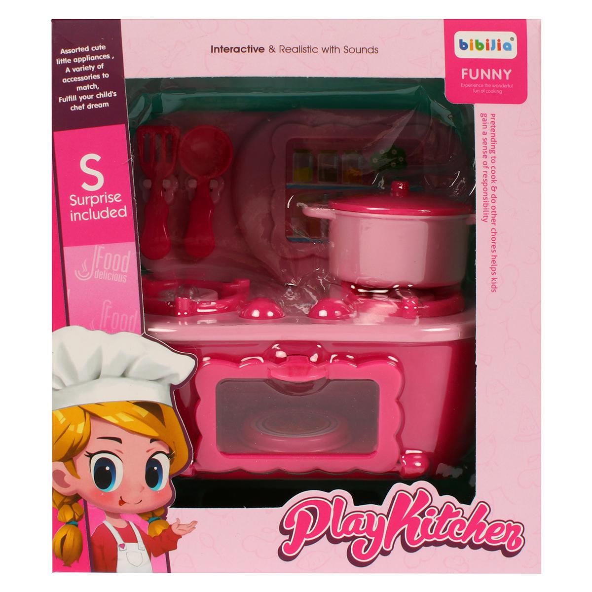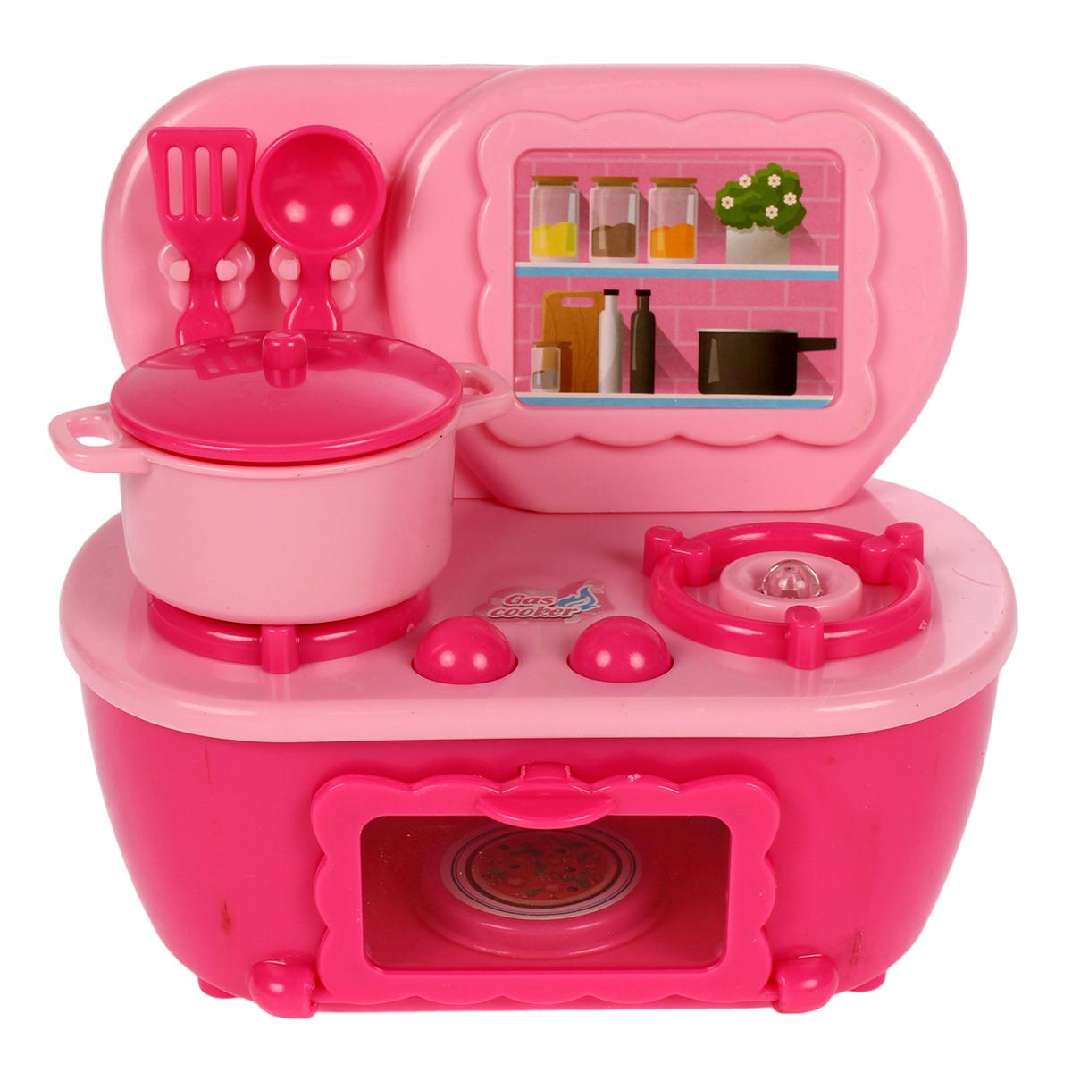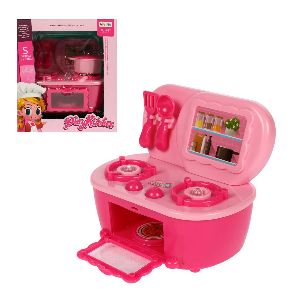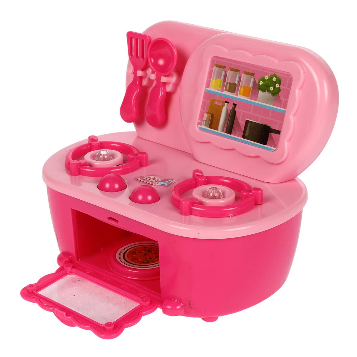 Игрушечная кухонная плита «Play Kitchen» интерактивная с звуками, розовая, 3 аксессуара, 13х11х7 см, пластик