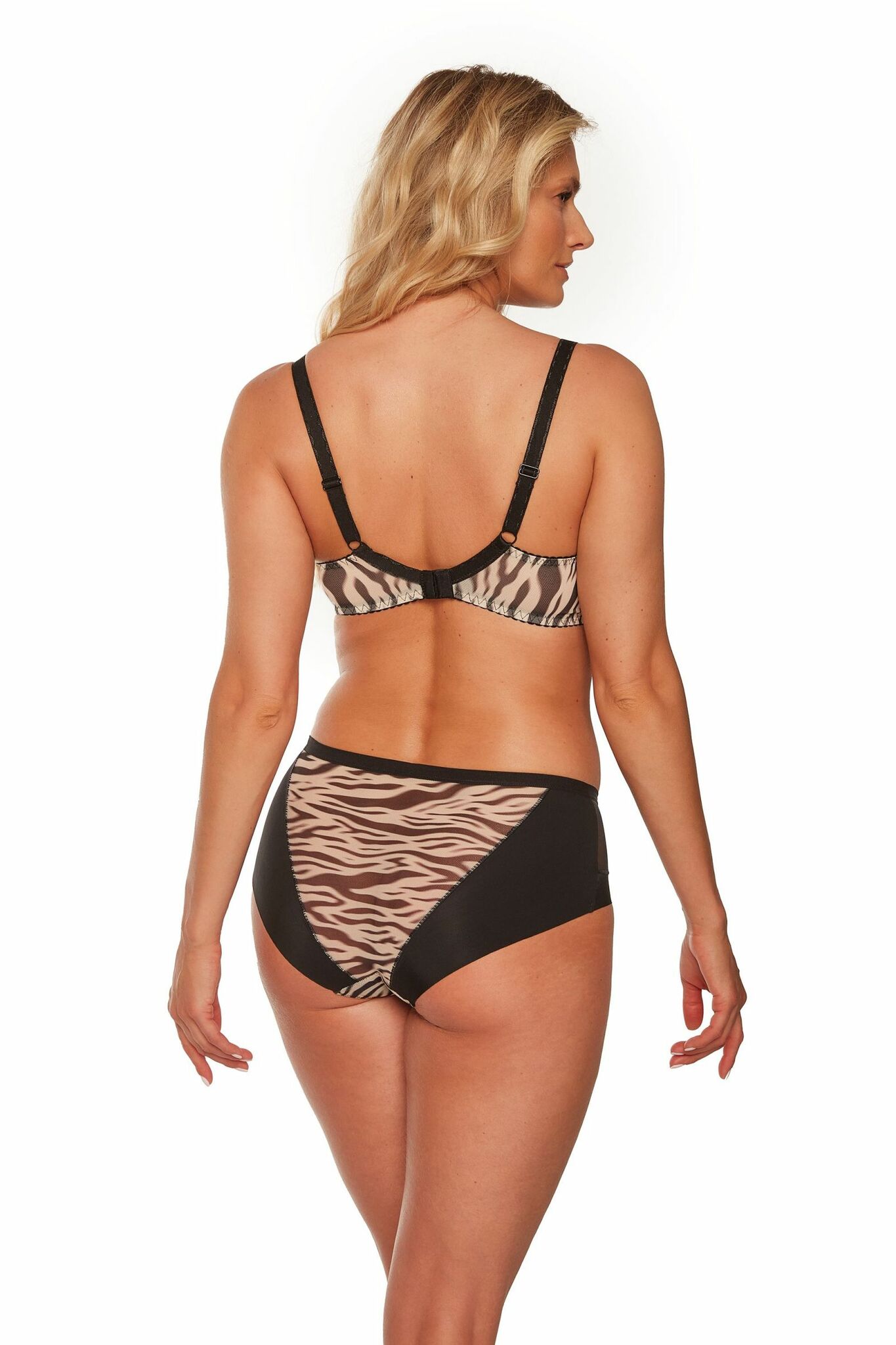 Размер бюстгальтера — 75D, что делает его подходящим для женщин с соответствующими параметрами. Анималистический принт добавляет изюминку, а черные бретельки и металлическая фурнитура придают изделию стильный вид. Бюстгальтер Alia — это не просто нижнее белье, это элемент вашего стиля и уверенности.