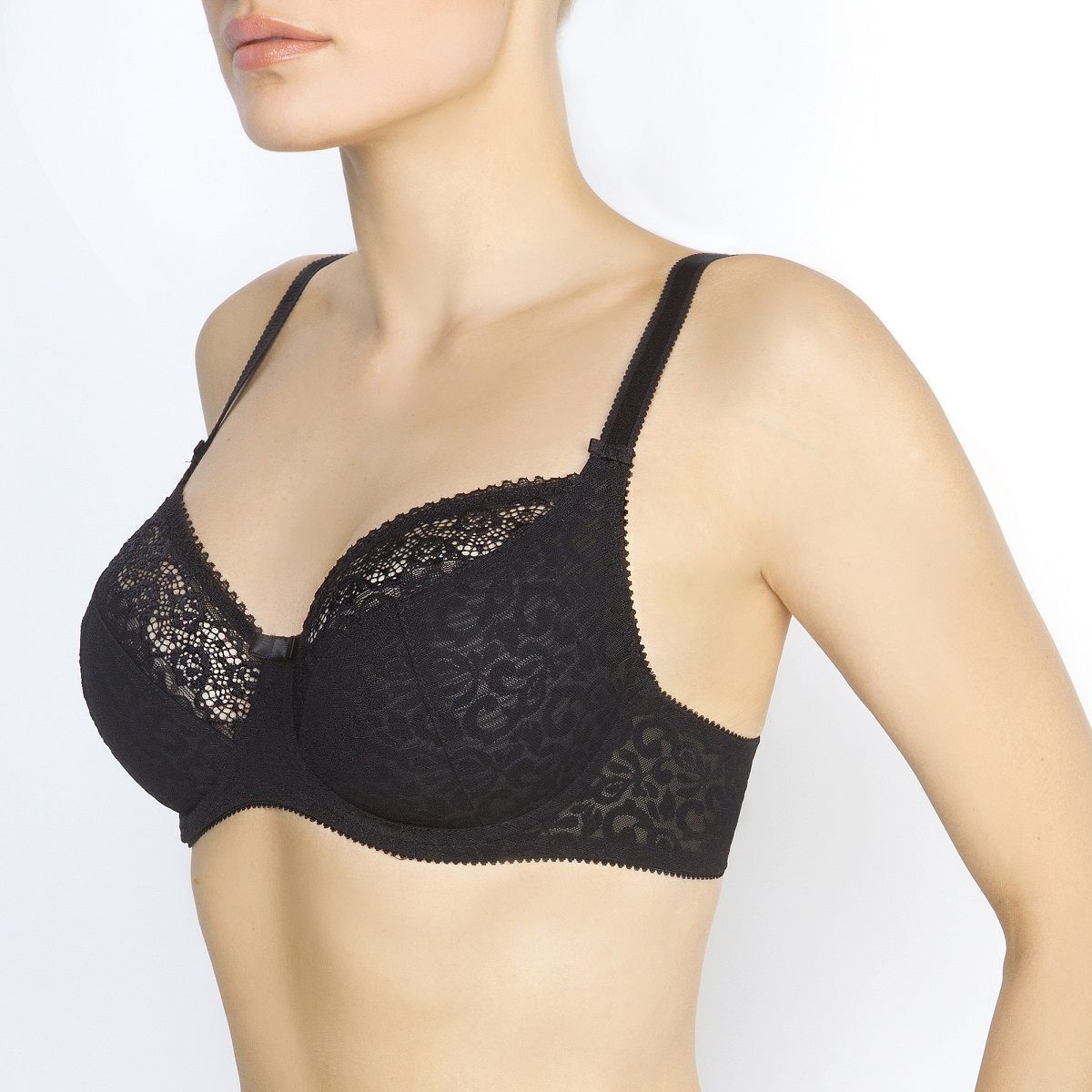 Бюстгальтер-балконет с трехразрезными чашками, кружево, размер 95E, черный