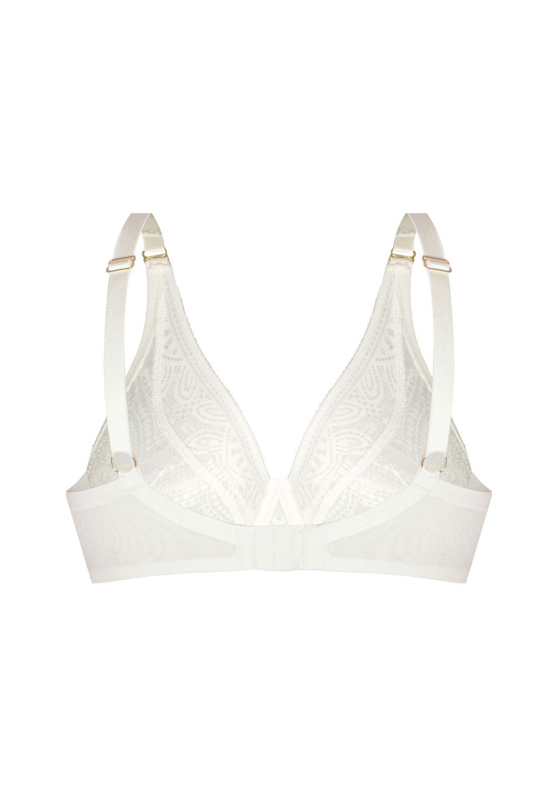Модель разработана специально для размера 90F с учетом анатомических особенностей. Декоративный элемент из металлического сплава в центре добавляет изюминку дизайну, сохраняя функциональность застежки. Широкий пояс из двухслойной сетки предотвращает вращение и обеспечивает равномерное распределение давления.