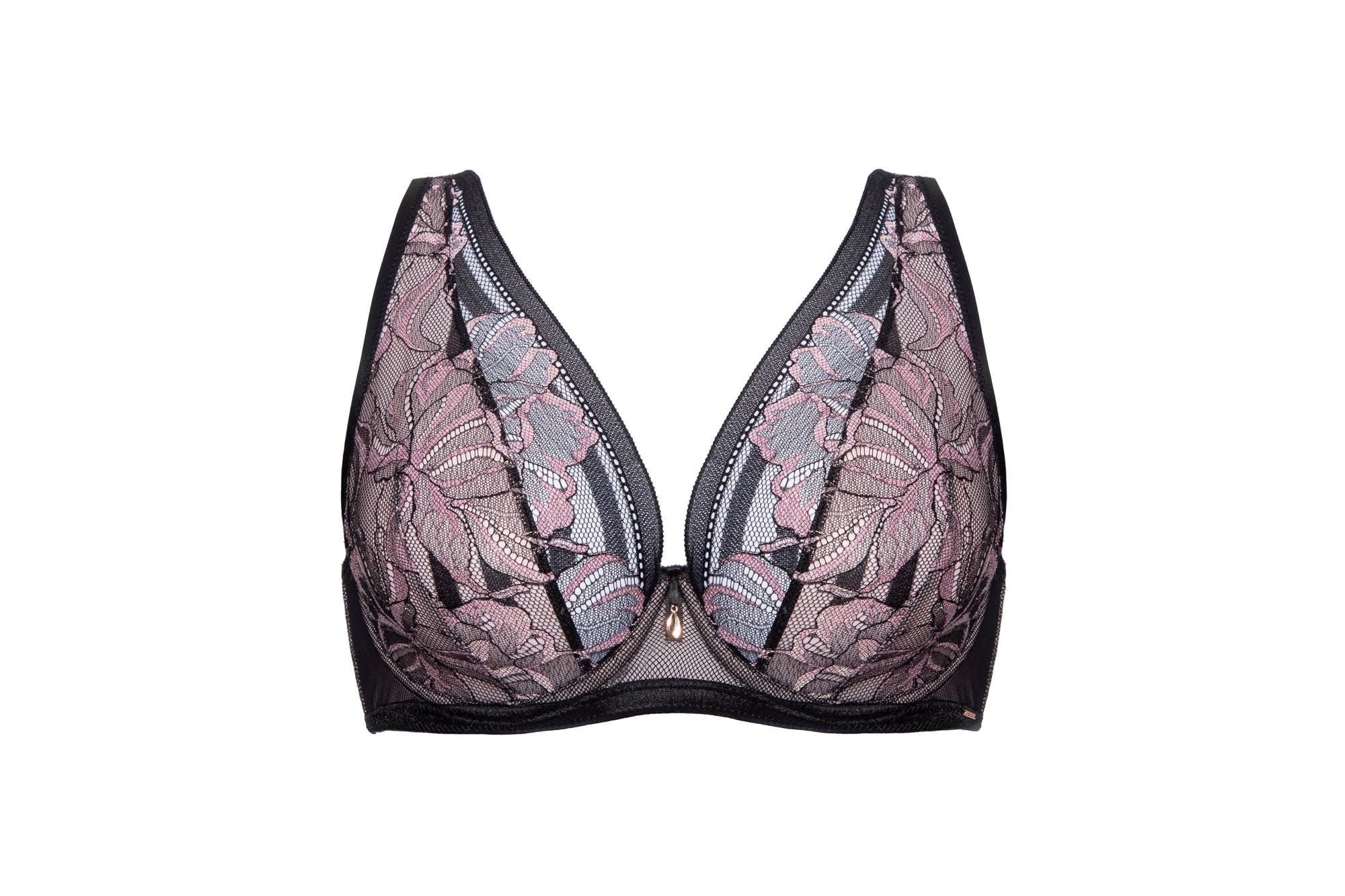 Бюстгальтер-бралетт Glossy Iris, размер 65D, черный/розовый, кружево