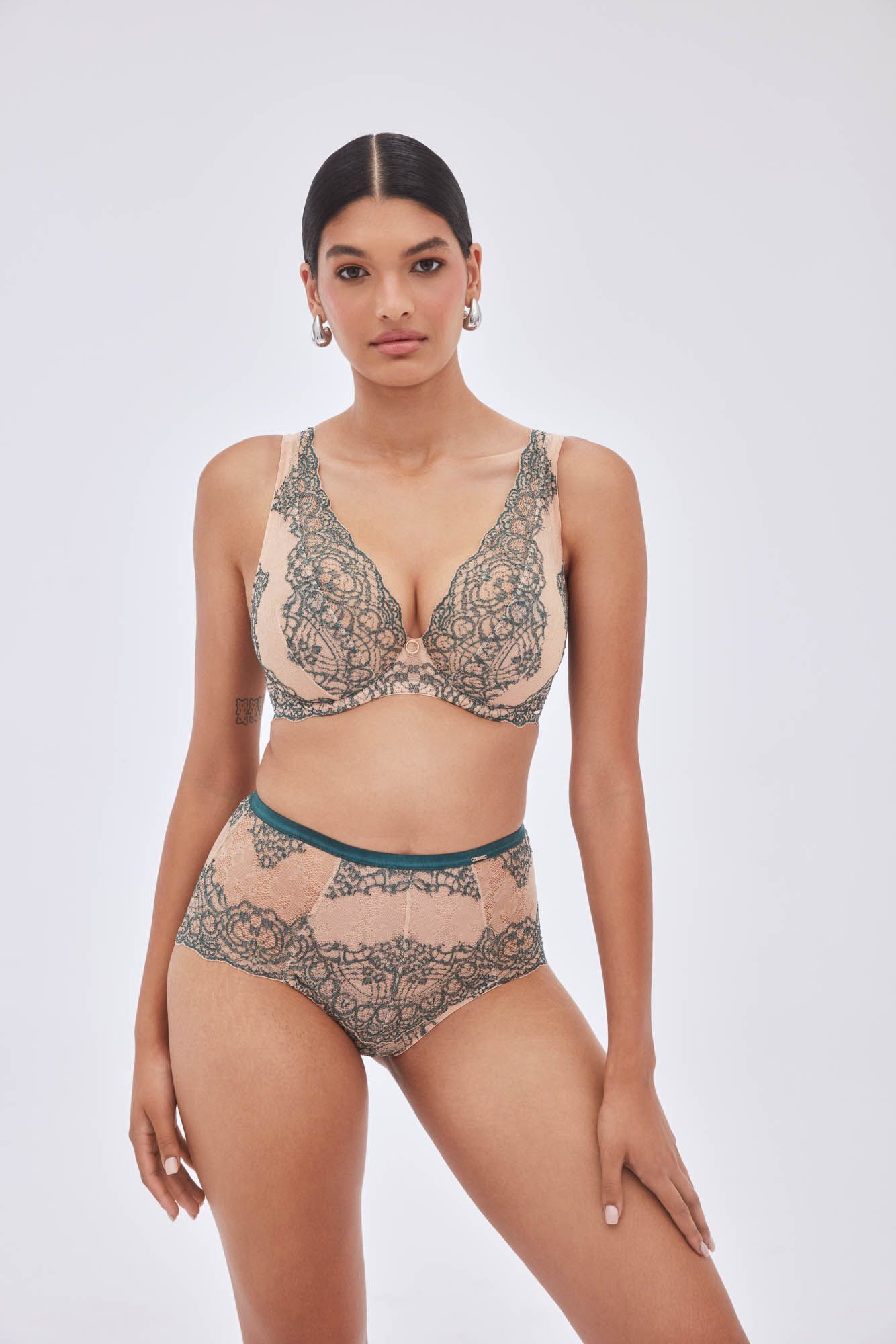 Бюстгальтер-бралетт "Splendore", размер 70D, изумрудный, кружево с телесной сеткой