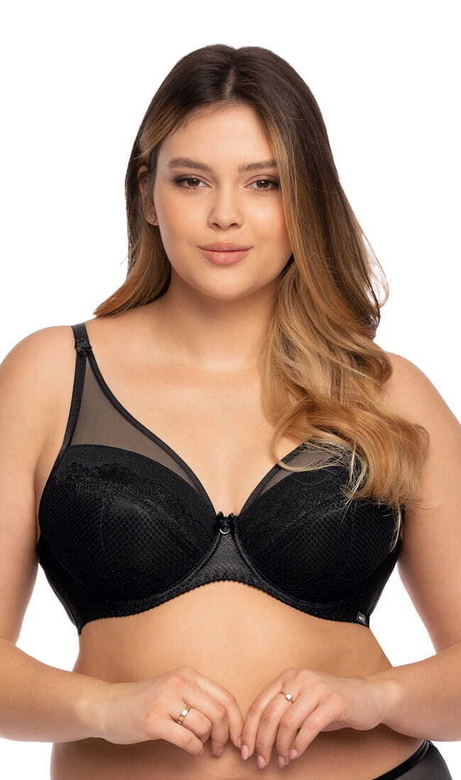 Размер бюстгальтера — 75H, цвет — черный. Изготовлен из высококачественных материалов: 60% полиамид, 15% полиэстер, 15% эластан и 10% хлопок. Застежка на спине с удлинителем и увеличенным количеством крючков в зависимости от размера обеспечивает надежную фиксацию. Бюстгальтер производится в Польше, что гарантирует высокое качество и долговечность.