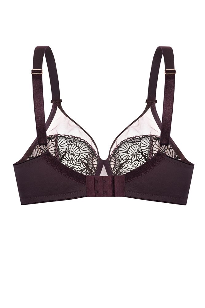 Идеальный выбор для обладательниц пышных форм (размер 80H) благодаря усиленным косточкам и широким бретелям. Сливовый оттенок с прозрачными кружевными вставками создаёт эффект роскошного нижнего белья, сохраняя практичность ежедневной модели.