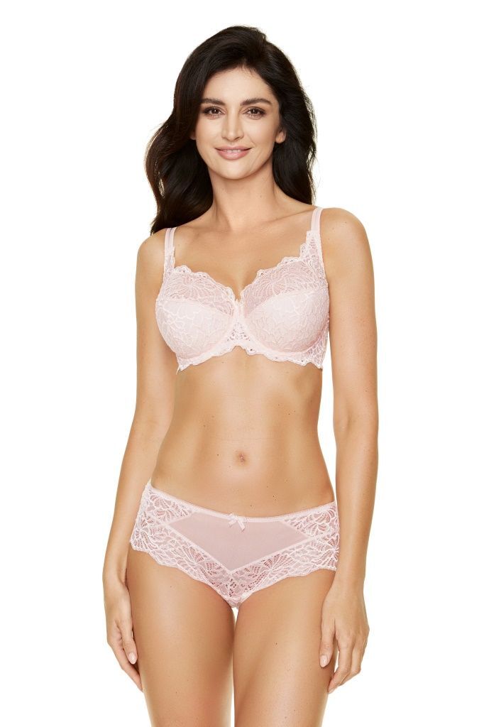 Чаши с двойной конструкцией: внешнее кружево плотности 85 denier сочетается с внутренней хлопковой подложкой. Удлинённая застёжка на 3 крючка с возможностью регулировки обхвата. Усиленные косточки из гибкого полимера повторяют естественный изгиб тела.