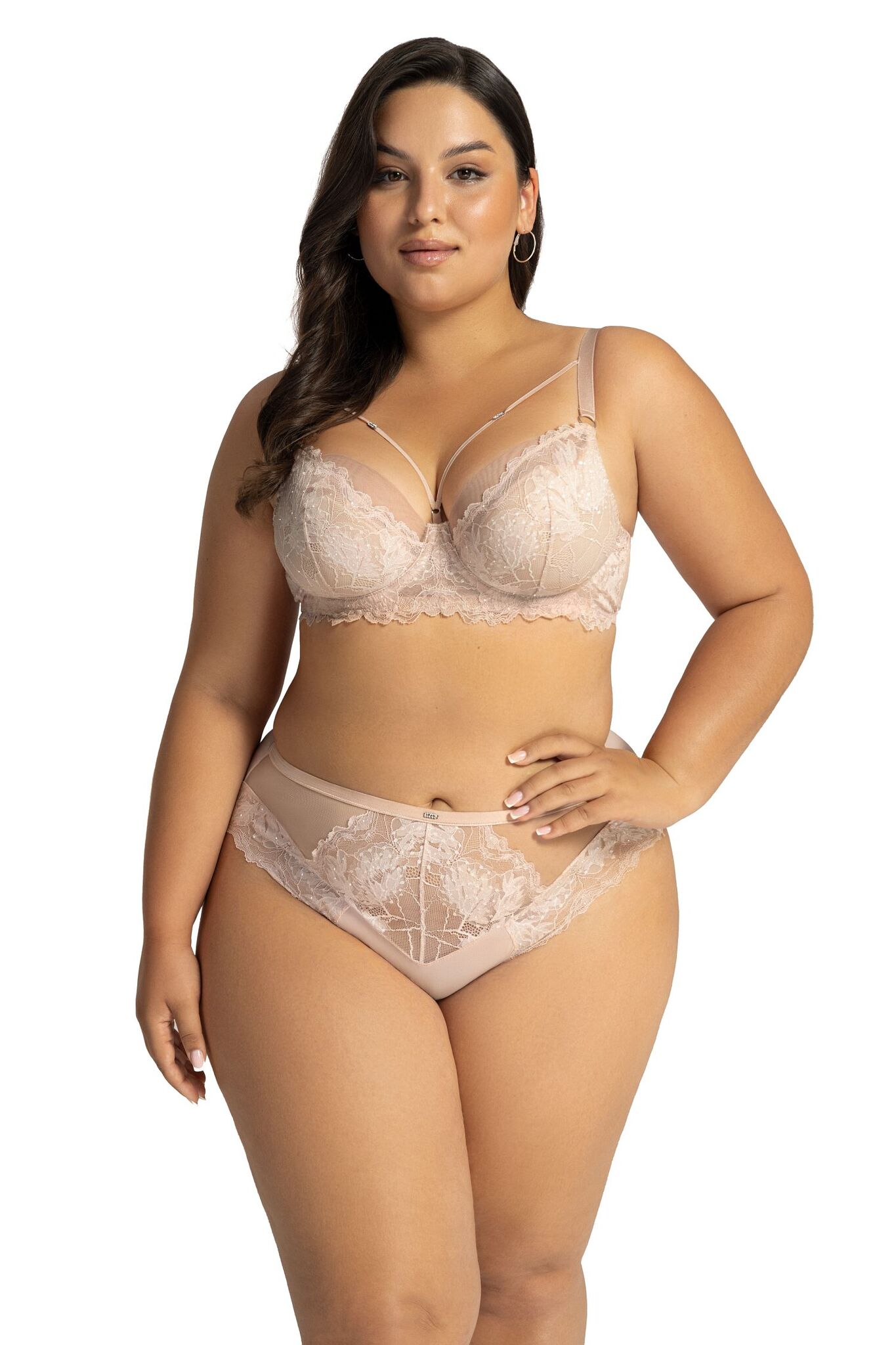 Бюстгальтер «Fiesta» сочетает деликатную эстетику и продуманную конструкцию. Мерцающее кружево серебристо-розового оттенка создаёт эффект второго кожи, сохраняя естественность линий под любой одеждой.