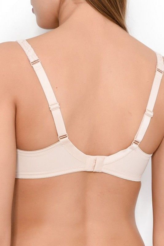 Особенность кружева — его мягкость и эластичность. Оно плотно прилегает к телу, не создавая дискомфорта, и помогает сгладить небольшие различия в форме или размере груди. Благодаря этому бюстгальтер выглядит аккуратно и обеспечивает естественную поддержку без излишнего давления. Пудровый оттенок универсален и гармонично сочетается с разной одеждой — от светлых блузок до тонкого трикотажа.