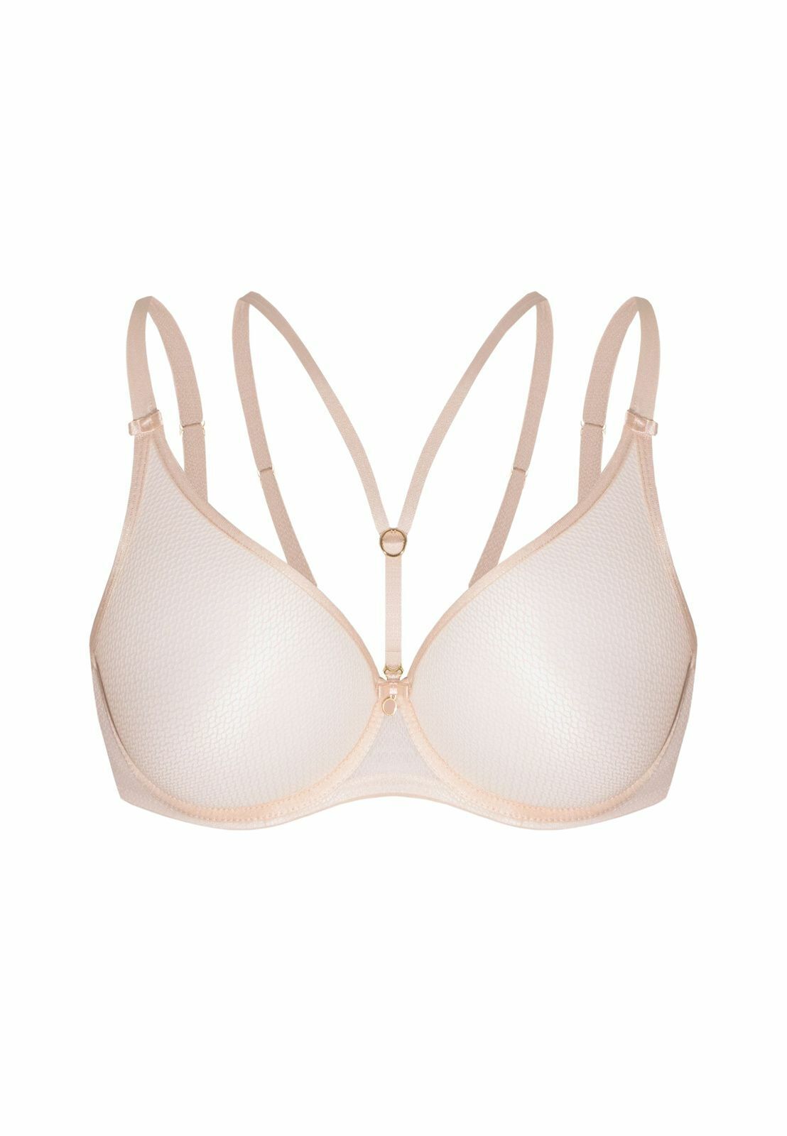 Бюстгальтер Juliana выделяется среди аналогичных товаров благодаря своей конструкции и материалам. Он изготовлен из гибридной пены, что обеспечивает отличную поддержку и комфорт. Внешняя сторона чашек покрыта сеткой, что добавляет изысканности и делает бюстгальтер более привлекательным. Металлическая фурнитура цвета желтого золота придает изделию нотку роскоши.