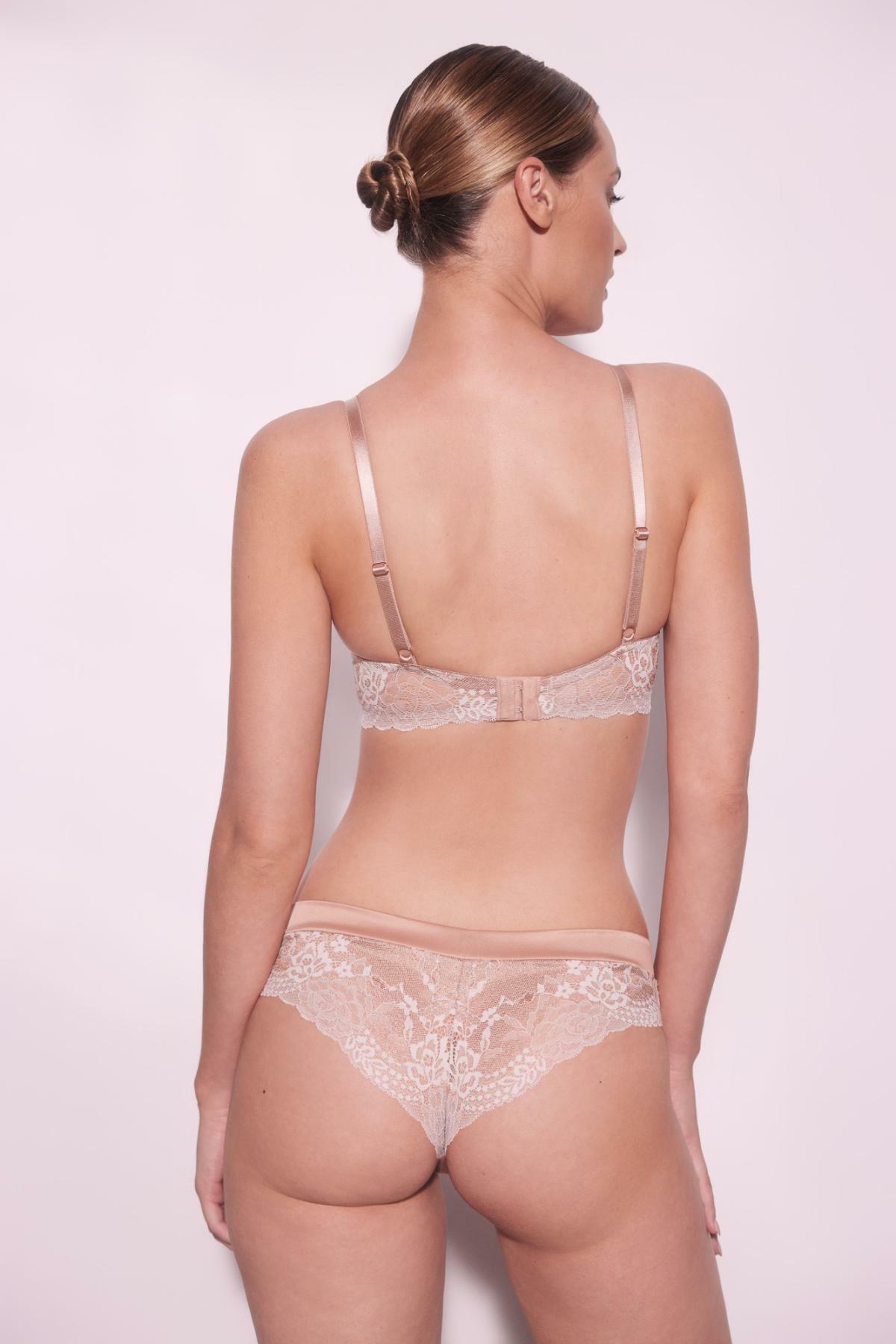 Бюстгальтер Lava Dorata создан для тех, кто ценит комфорт и стиль. Мягкие чашечки на косточках обеспечивают надежную поддержку без компромиссов в утонченном дизайне. Благодаря комбинации двухцветного кружева и телесной сетки, модель выглядит изысканно и нежно.