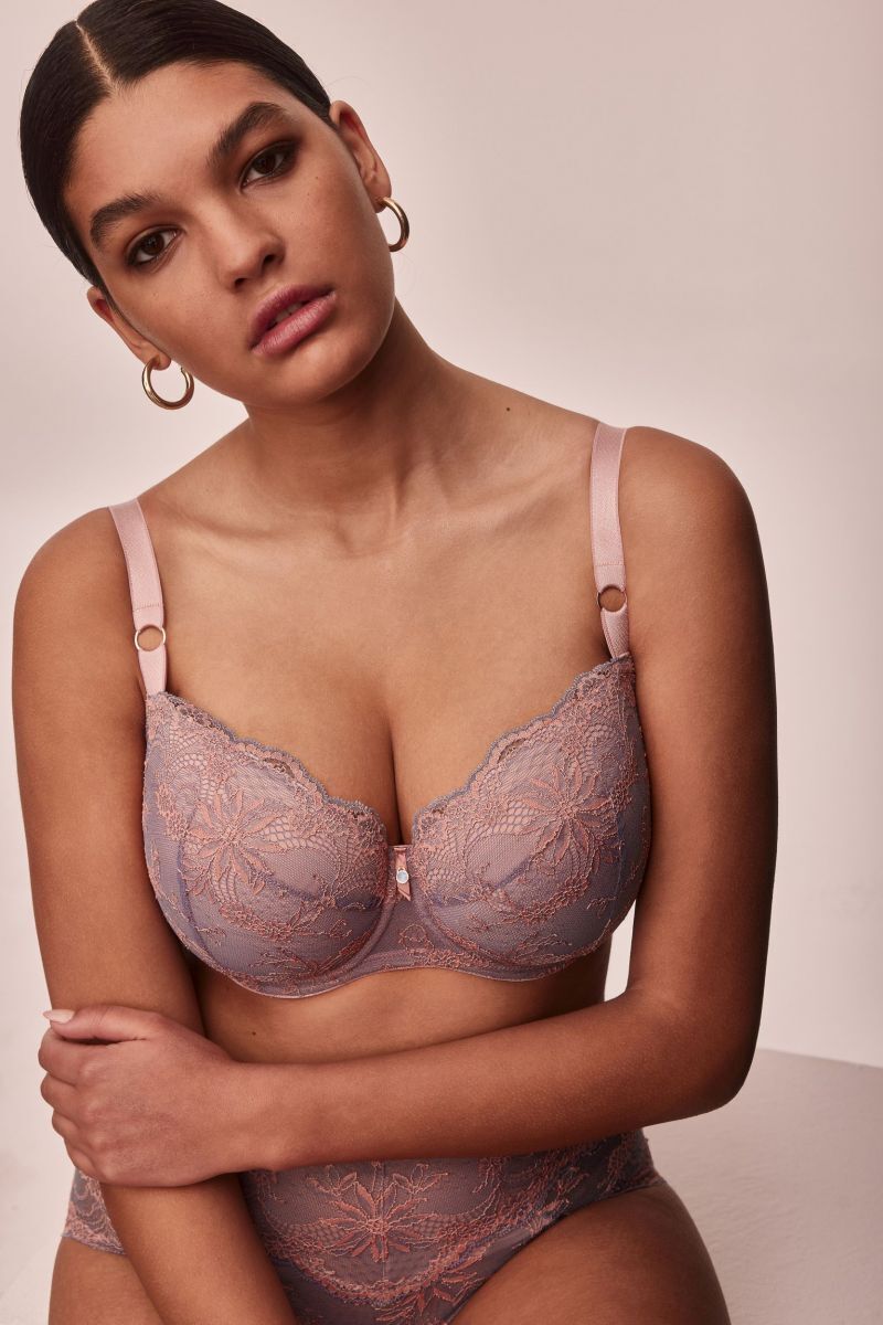 Бюстгальтер Madera на косточках, размер 90E, розовый с серым, съемные пуш-ап вкладыши