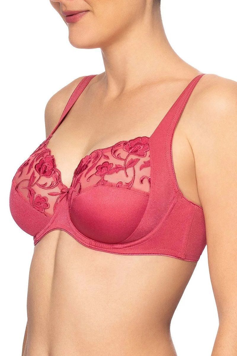 Почему стоит выбрать именно этот бюстгальтер? Во-первых, он выполнен из высококачественных материалов: 79% полиамида, 15% полиэстера и 6% эластана, что гарантирует долговечность и приятные тактильные ощущения. Во-вторых, чашка с горизонтальным рельефом и боковым подрезом обеспечивает надежную поддержку и формирует красивую линию груди. В-третьих, изысканный цвет грязно-розового оттенка и цветочный узор вышивки на сетке добавляют романтичности и женственности.