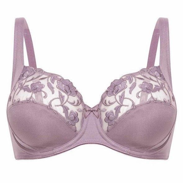Бюстгальтер 'Moments' с каркасными чашками, размер 95D, серый, микрофибра с цветочной вышивкой