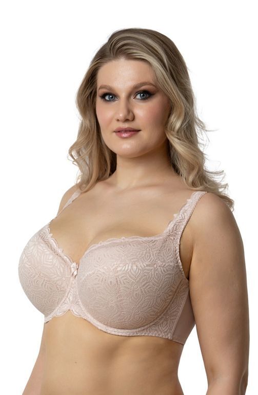 Бюстгальтер с овальными чашками и диагональным членением создает округлую и наполненную форму, что позволяет вам чувствовать себя уверенно и привлекательно. Широкий стан с боковыми упругими пластинами плотно облегает тело, обеспечивая стабильную и комфортную посадку. Он подходит для повседневной носки и идеально сочетается с облегающей одеждой.