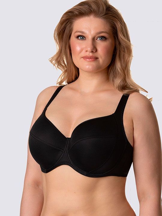 Комбинированный материал (85% полиамид, 15% эластан) обеспечивает мягкое прилегание и воздухообмен. Усиленный подгрудный бандаж с эластичной резинкой предотвращает смещение в течение дня, а регулируемые застежки позволяют настроить плотность посадки.