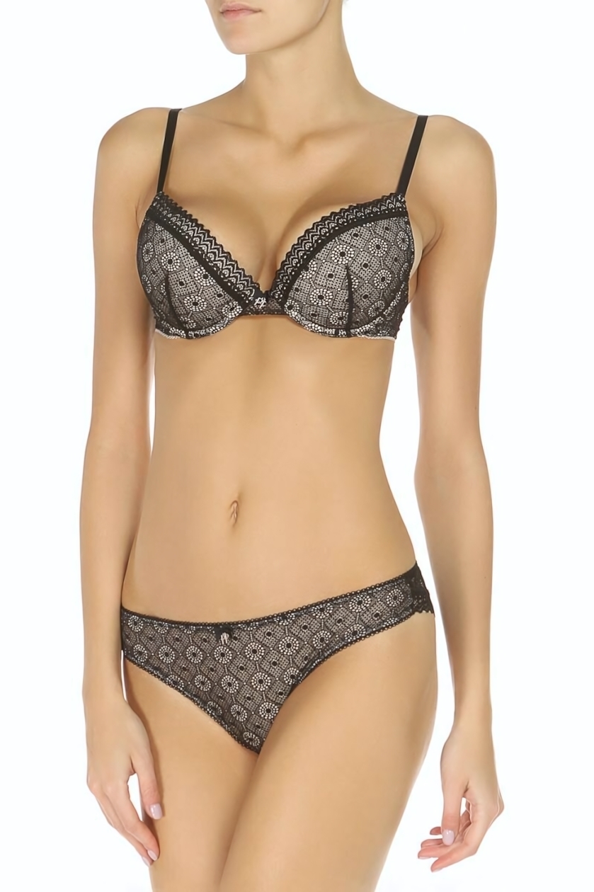 Бюстгальтер на косточках 'Erin', размер 36D, черный/бежевый, кружевной