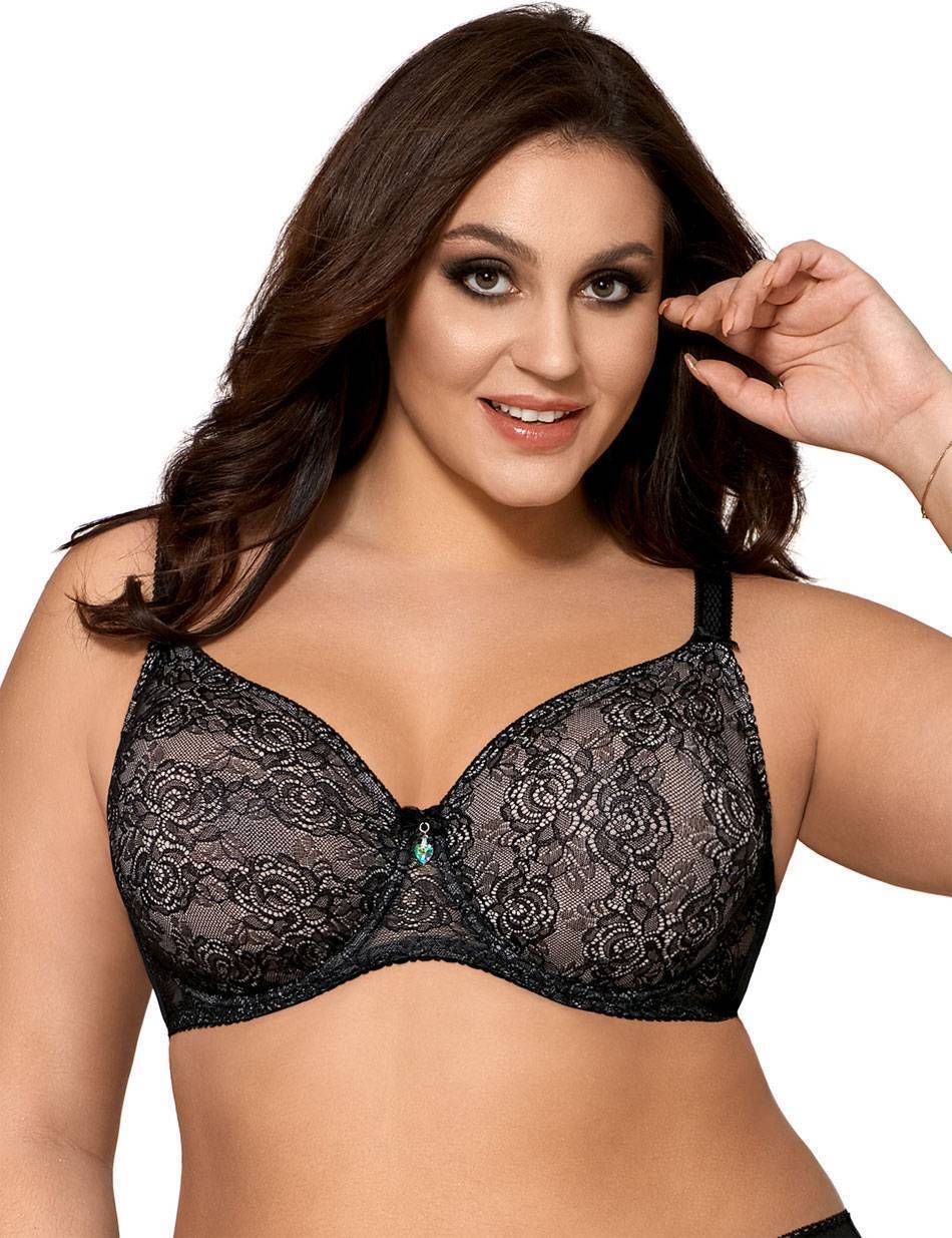 Бюстгальтер на косточках AVA с бесшовными чашками, гипюр, боковая поддержка, размер 70I, черный