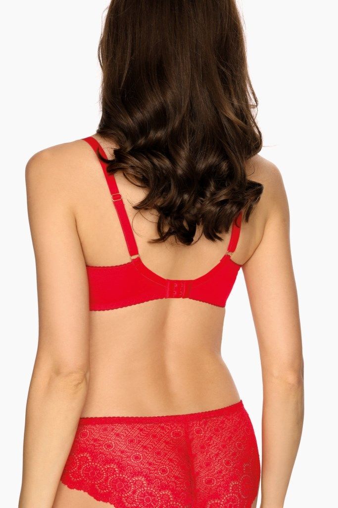 Модель выполнена из эластичного материала (96% полиамид, 4% эластан), который сохраняет форму после многочисленных стирок. Плотная чашка с тонким поролоном визуально корректирует силуэт, сохраняя естественность. Универсальный красный цвет и кружевные элементы делают белье идеальным выбором как для повседневной носки, так и для особых случаев.