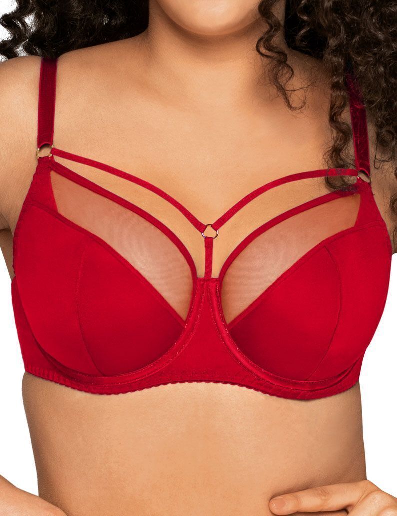 Бюстгальтер на косточках 'AVA', размер 70G, красный, с сетчатыми вставками