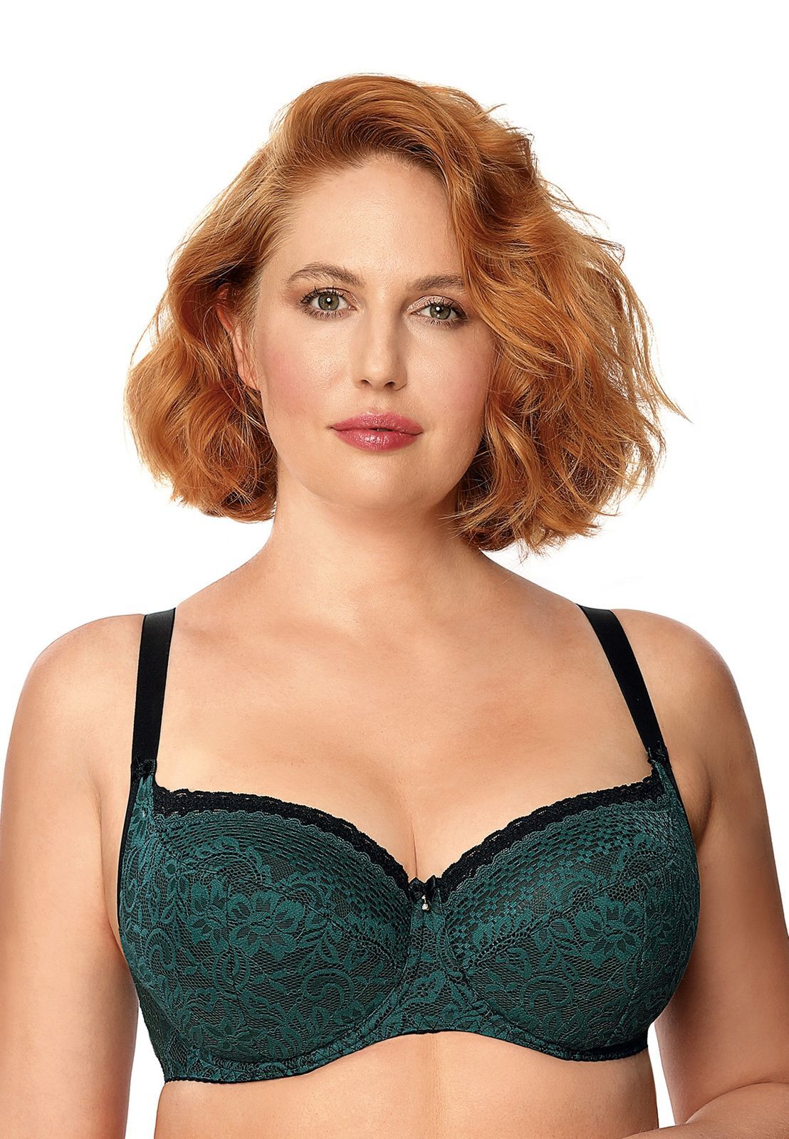 Чувствуйте себя уверенно и комфортно каждый день благодаря бюстгальтеру 'Xena'. Его продуманный дизайн сочетает в себе изысканное кружево изумрудного цвета и функциональность плотной чашки на косточках.