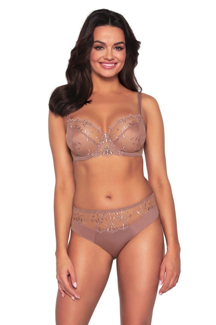 Преимущества этого бюстгальтера заключаются в его функциональности и эстетике. Он не только поддерживает грудь, но и подчеркивает ее форму, создавая изящный силуэт. Удлинитель застежки позволяет адаптировать бюстгальтер под индивидуальные параметры, что особенно важно для комфортного ношения. Кроме того, металлическая фурнитура цвета меди добавляет изысканности и стиля.