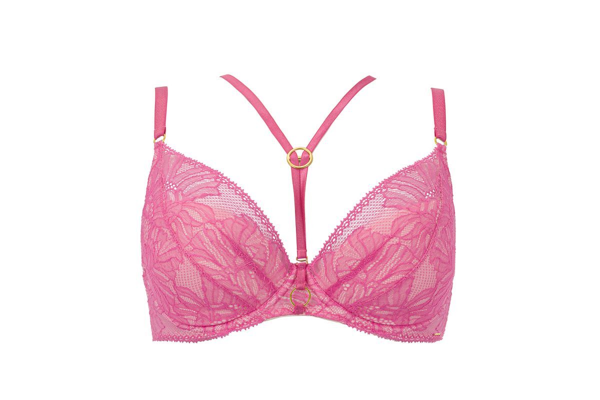 Бюстгальтер пуш-ап 'Aruba', размер 65G, ярко-розовый, с кружевом и съемными вкладышами