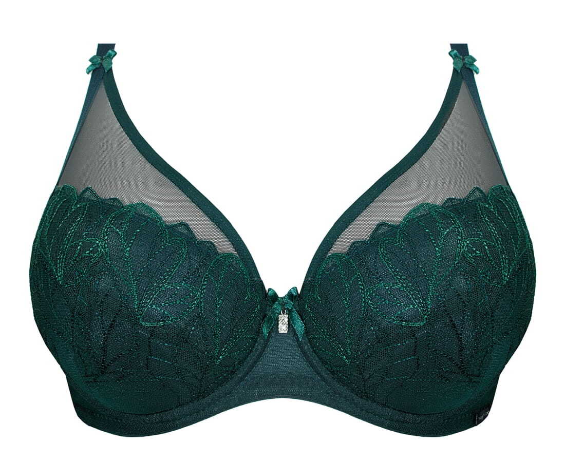 Бюстгальтер пуш-ап 'Emily', размер 75C, изумрудный, с вышивкой и сетчатыми вставками