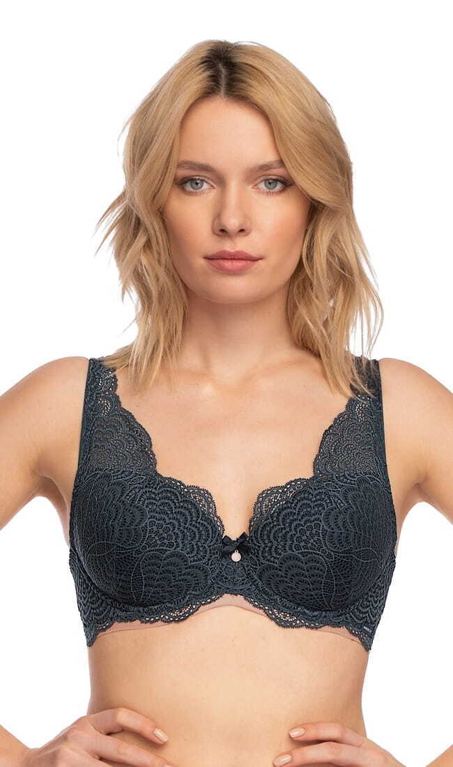 Бюстгальтер пуш-ап "Estera", размер 75C, серый, с кружевом и съемными вкладышами