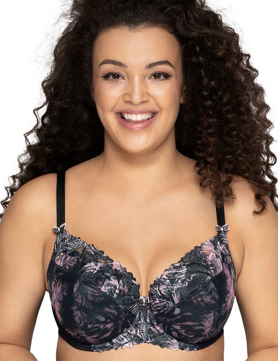 Бюстгальтер с чашками из сетки "листья", размер 95C, черный, 88% полиамид